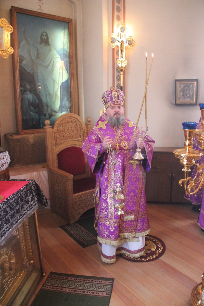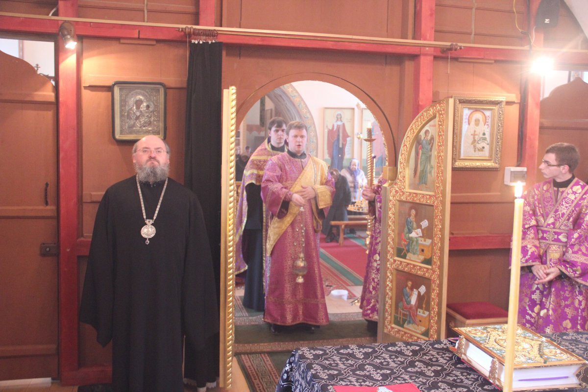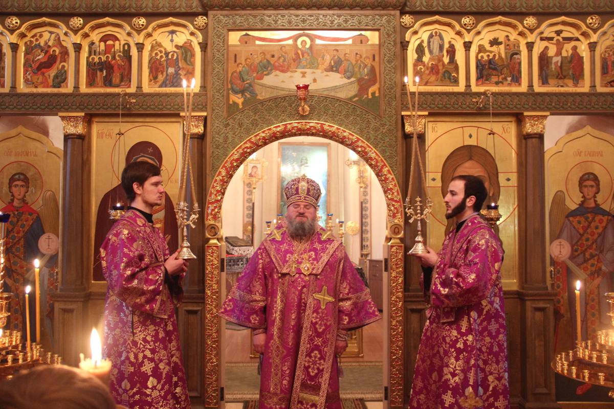 Архипастырю сослужили: протоиерей Сергий Сычев – настоятель храма, иерей Антоний Хатунцев, иерей Виктор Носов и диакон Евгений Ковригин. После отпуста литургии священнослужители совершили славление пред образом блаженной старицы Матроны, а затем владыка обратился к молящимся с проповедью.