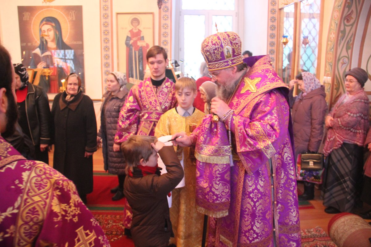 8 марта. Неделя вторая Великого поста. Святителя Григория Паламы. Память блаженной Матроны Московской. Управляющий Козельской епархией епископ Козельский и Людиновский Никита совершил всенощное бдение и Божественную литургию в Свято-Духовом храме города Козельска, северный придел которого освящен в честь блаженной Матроны Московской.