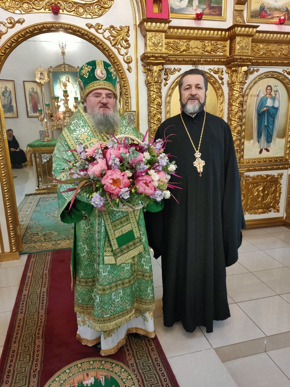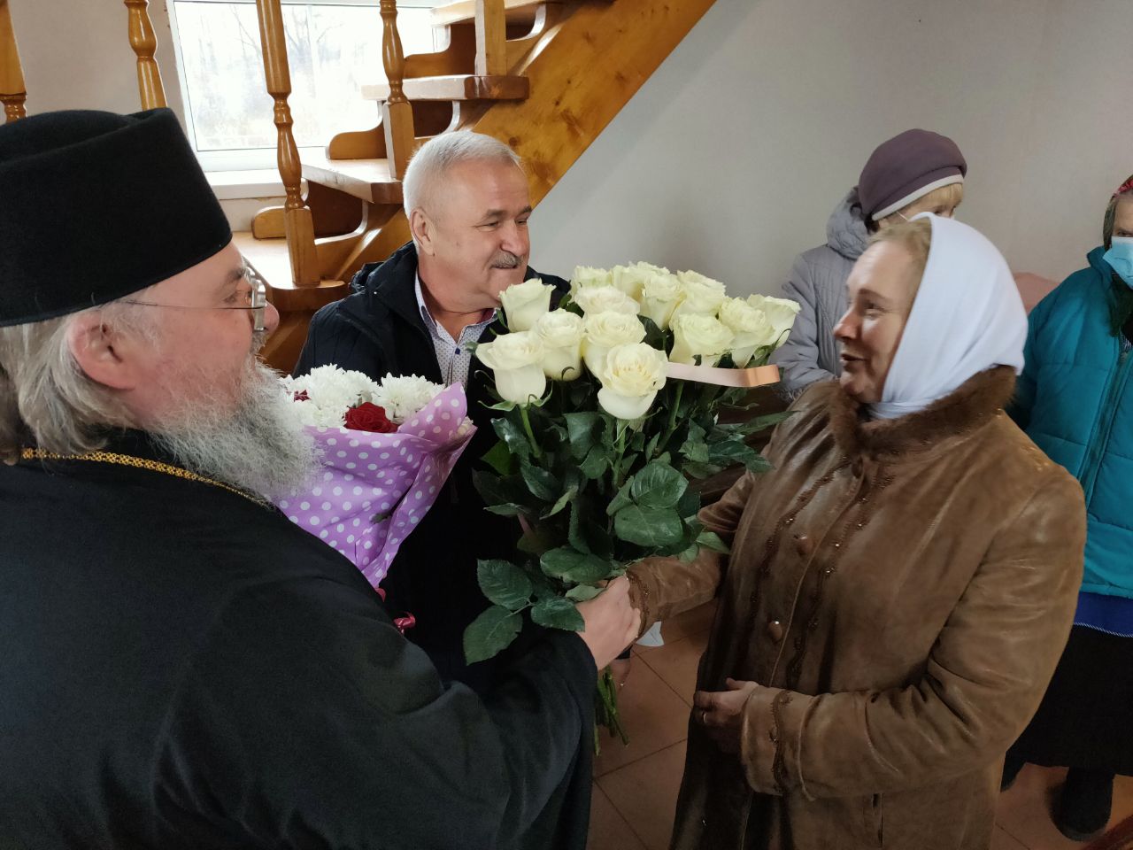 Владыка также поздравил со знаменательными датами отца Иоанна, и особо отметил, что в текущем году исполняется и 30-летний юбилей совместной семейной жизни батюшки и его супруги — матушки Марии и вручил отцу протоиерею подарочный наперстный крест, а его супруге икону Божией Матери.