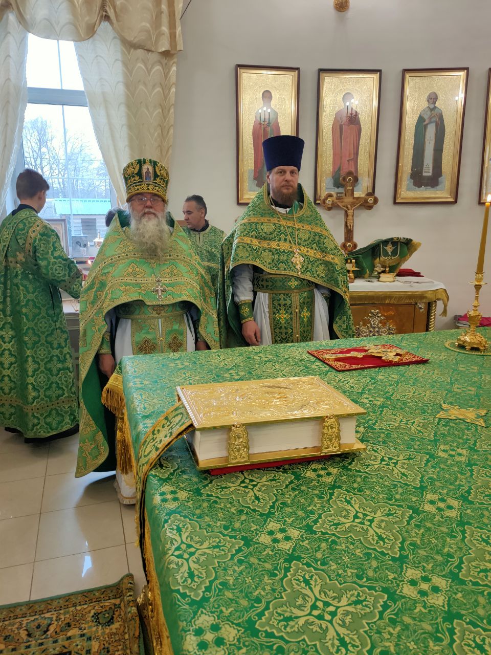 Преосвященному владыке сослужили: настоятель храма, благочинный округа протоиерей Иоанн Староста, духовник епархии протоиерей Алексий Жиганов, игумен Михаил (Семенов), протоиерей Алексий Казаков, протоиерей Антоний Хатунцев, клирики храмов Козельской епархии.