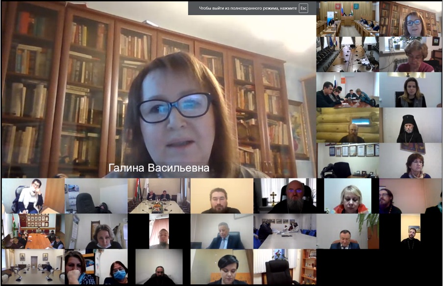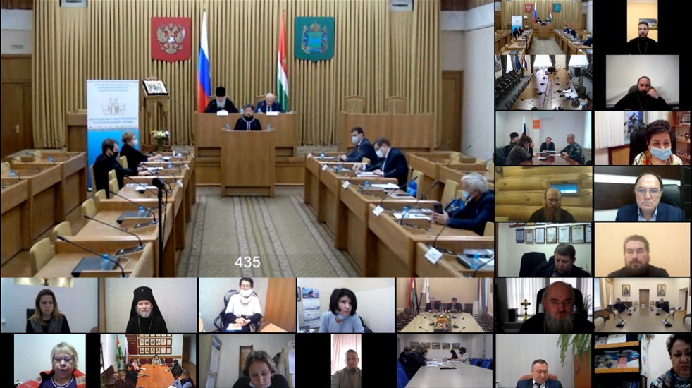 Затем прошел обмен мнениями и выступления с мест. Многие участники Парламентской встречи имели возможность дистанционно задать вопросы и внести предложения. От Калужской Митрополии во встрече приняли участие: архиепископ Песоченский и Юхновский Максимилиан – Управляющий Песоченской епархией; епископ Козельский и Людиновский Никита – Управляющий Козельской епархией; епископ Тарусский Иосиф – викарий Калужской епархии; руководители епархиальных отделов Калужской, Казельской и Песоченской епархий, духовенство Калужской митрополии, представители систем здравоохранения и образования, силовых и иных государственных структур.