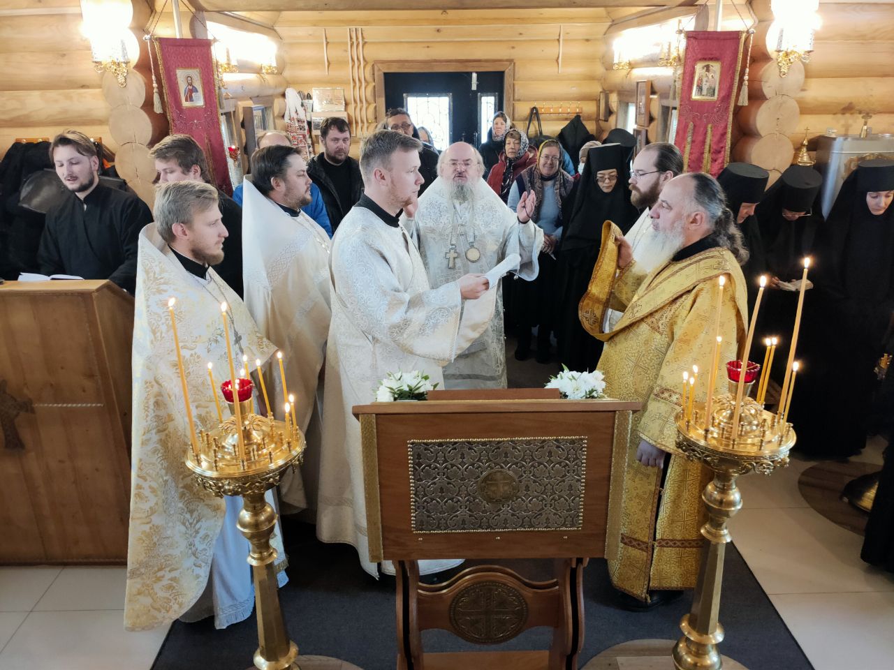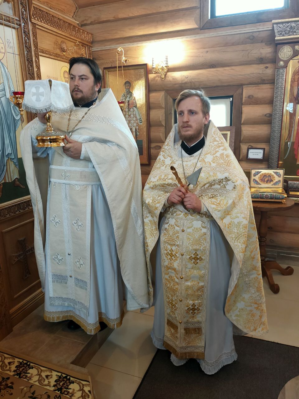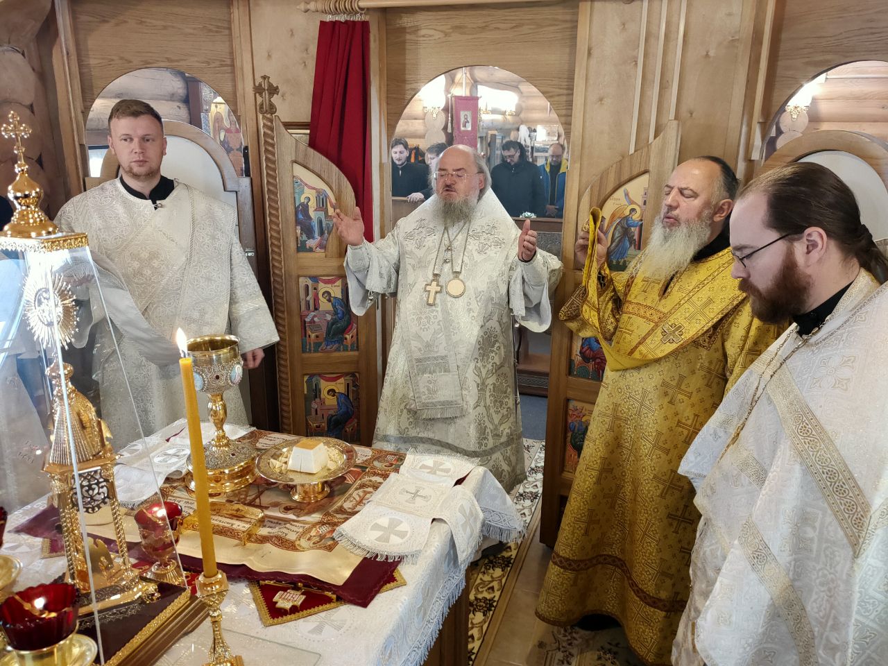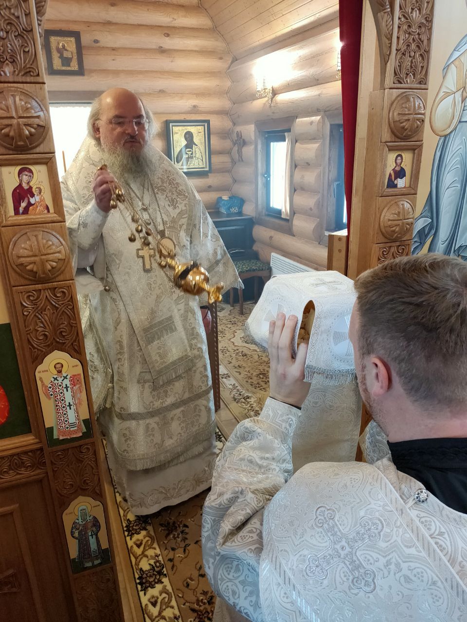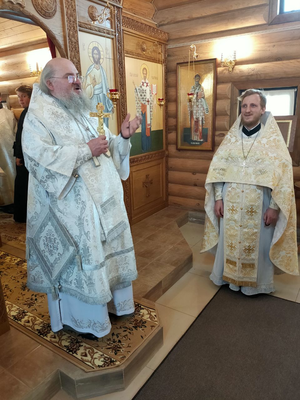Преосвященному архипастырю сослужили: протоиерей Антоний Хатунцев, иерей Тихон Худяков, иерей Лев Шиповский – настоятель храма, диакон Евгений Ковригин и диакон Вадим Ваньков.