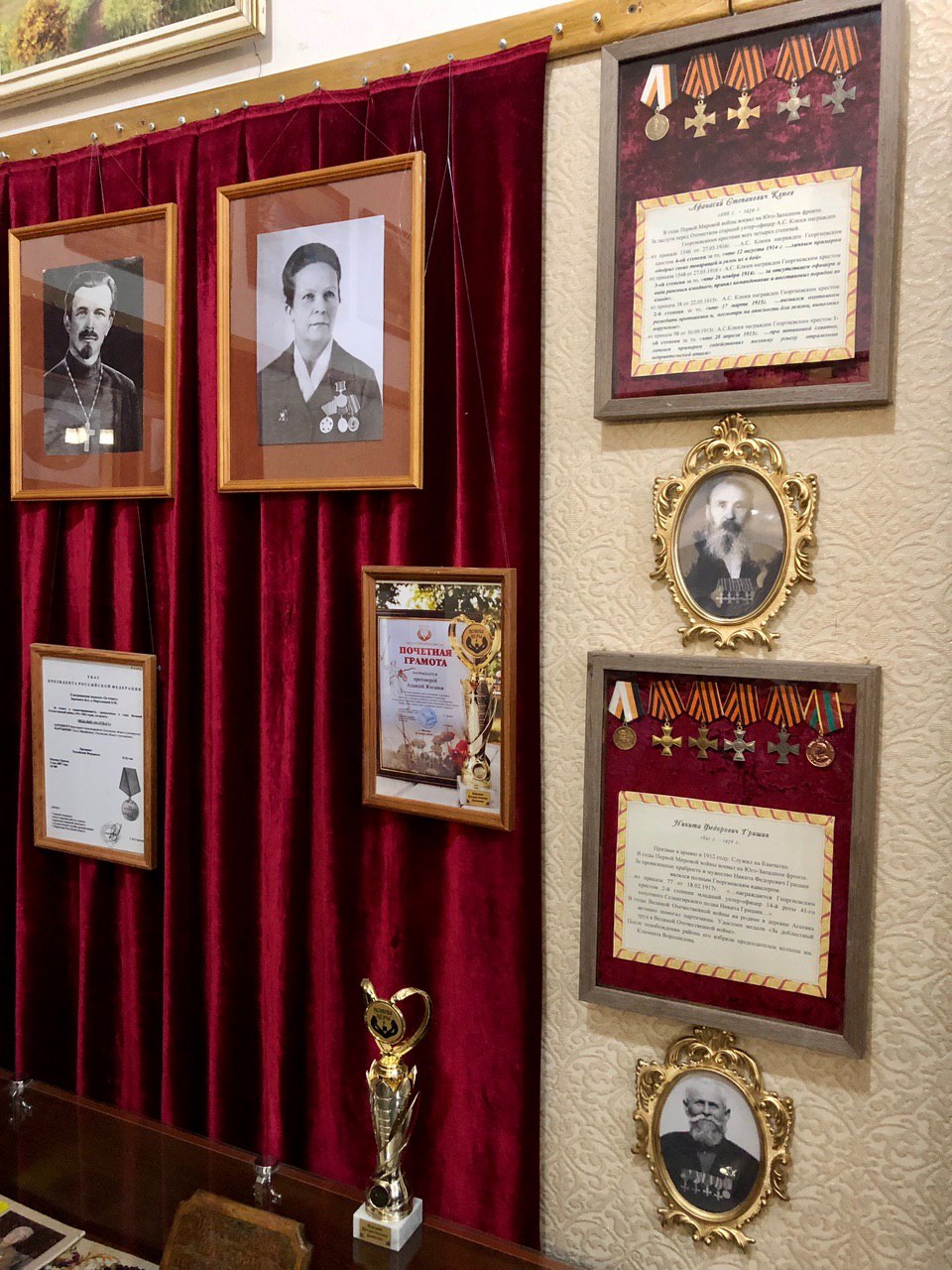 С большим уважением и любовью сотрудниками музея были собраны интересные материалы двух наших земляков: Афанасия Степановича Клюева (Старший унтер-офицер Клюев А.С. в годы Первой Мировой войны был награжден четырьмя Георгиевскими Крестами всех четырех степеней) и Гришина Никиты Федоровича (Гришин Н.Ф. в годы Первой Мировой войны за проявленные храбрость и мужество удостоен звания полного Георгиевского кавалера).