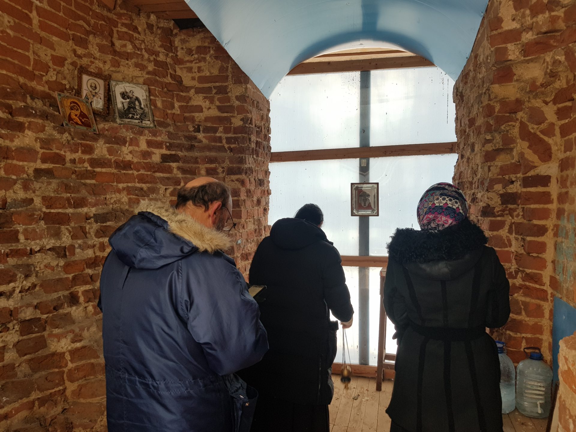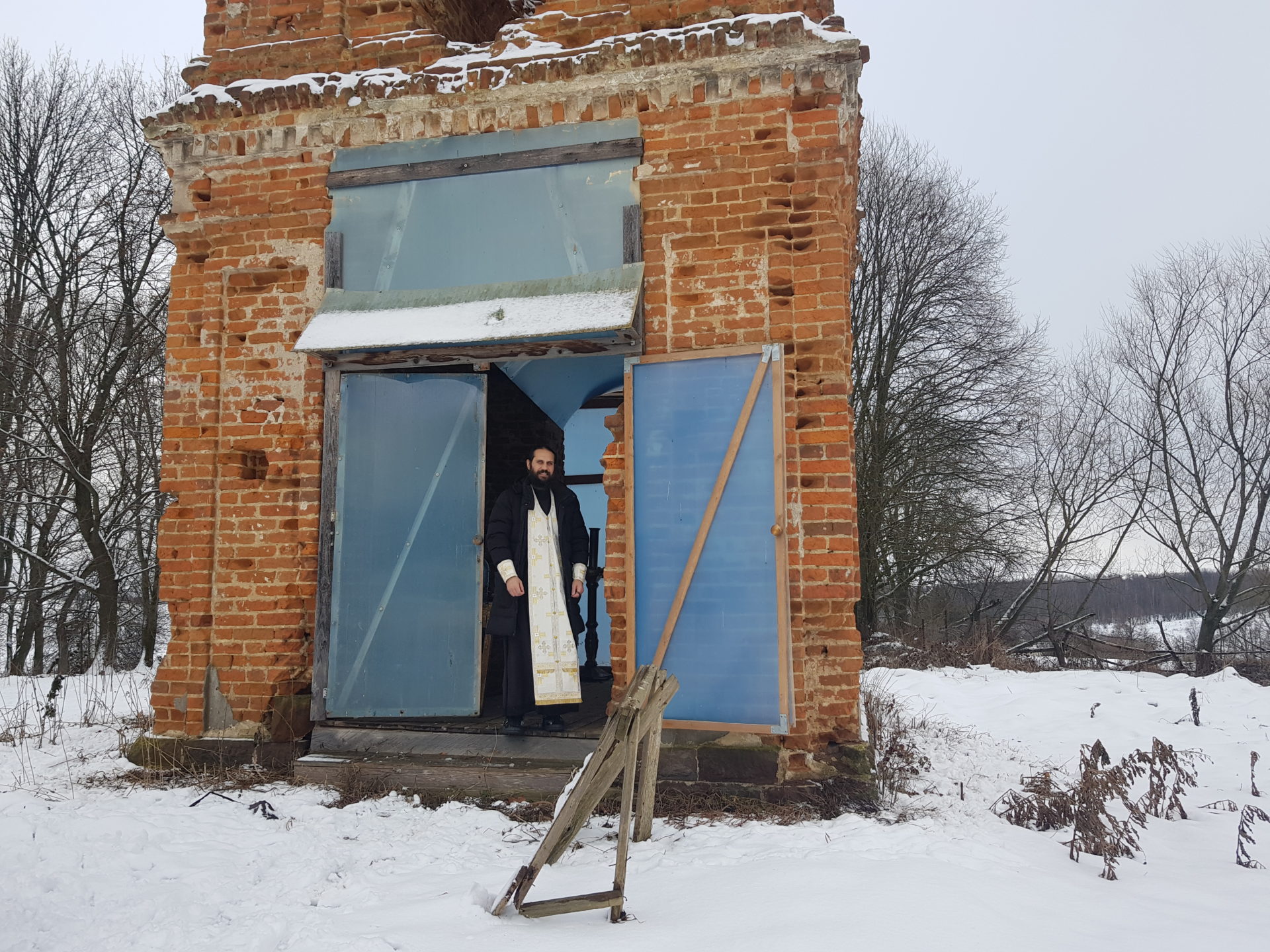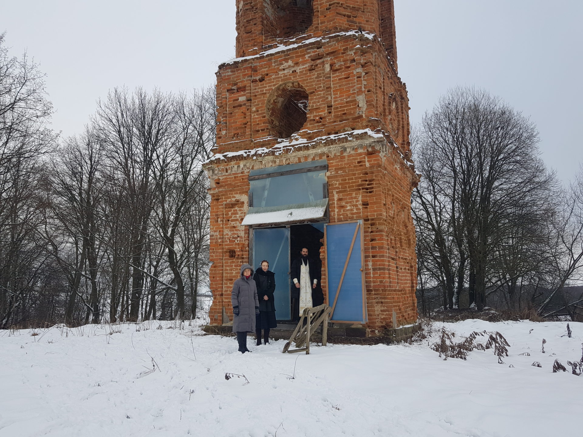 17 декабря, в день памяти святой великомученицы Варвары,  настоятель храма Зачатия Иоанна Предтечи села Губино иерей Максим Изопов отслужил молебен с акафистом великомученице Варваре в разрушенной церкви  села Матчино Козельского района.