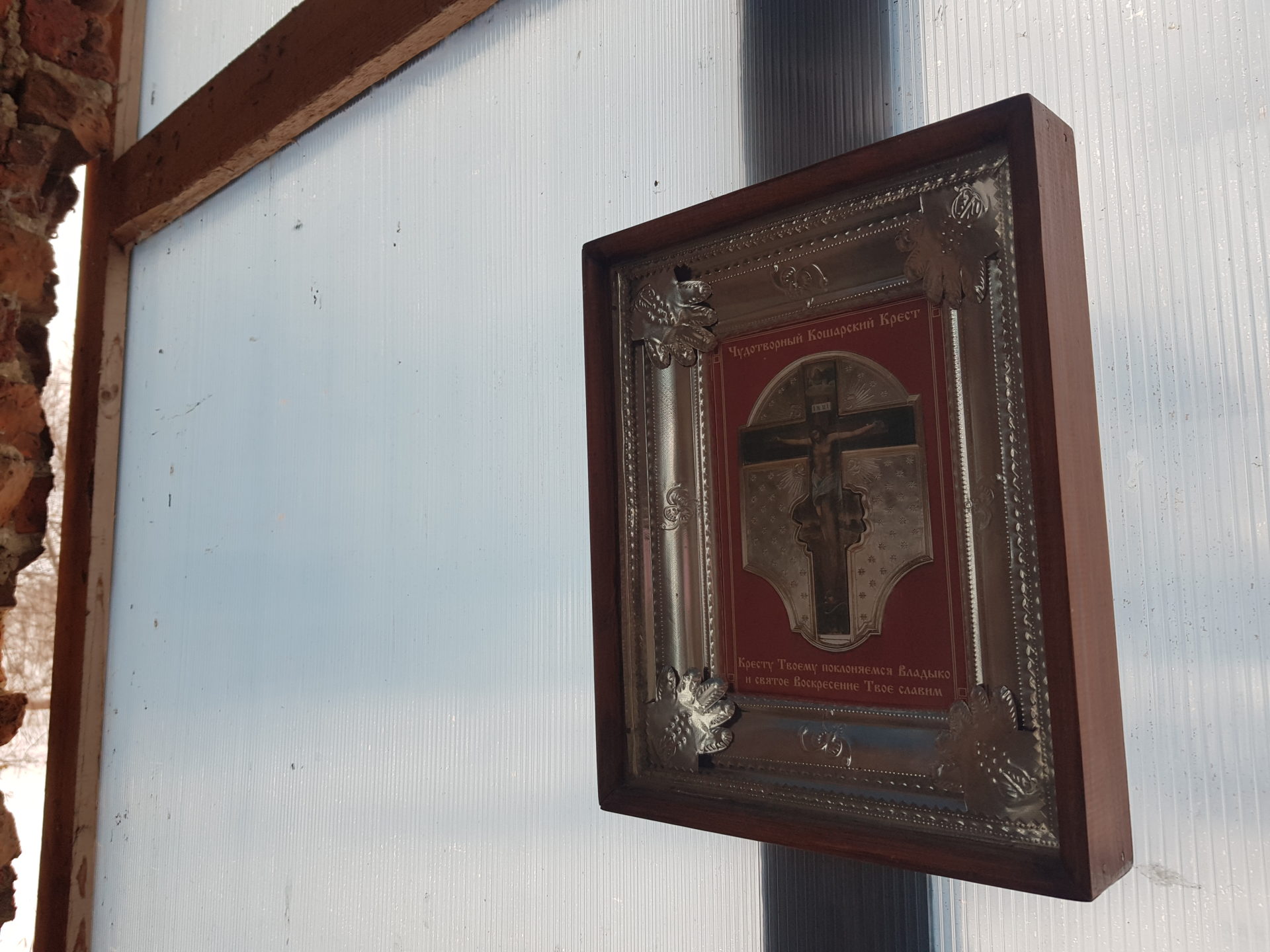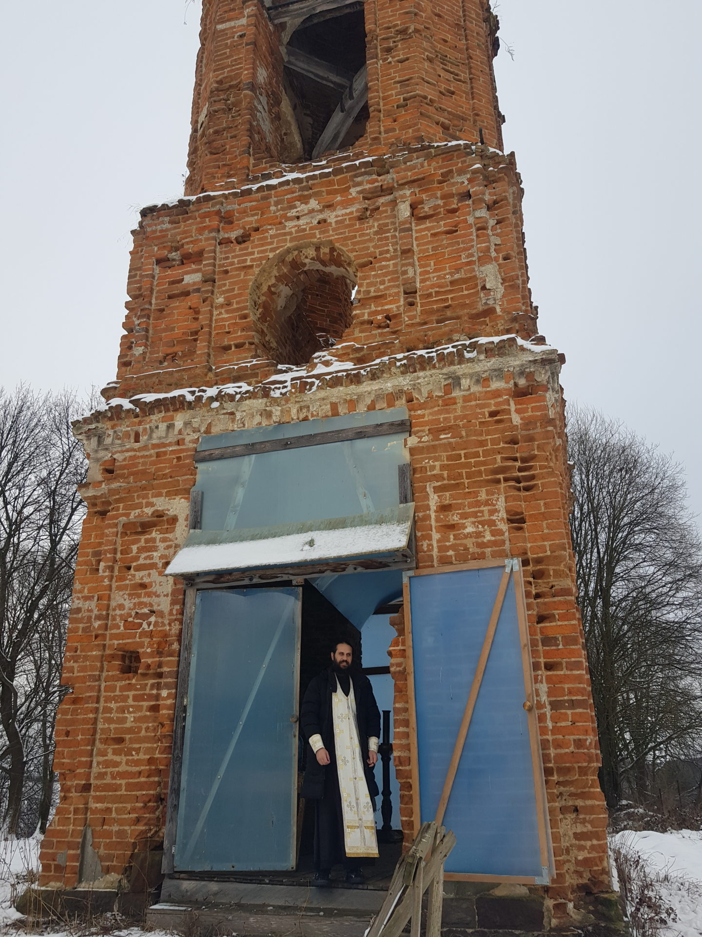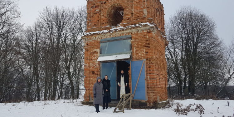 17 декабря, в день памяти святой великомученицы Варвары,  настоятель храма Зачатия Иоанна Предтечи села Губино иерей Максим Изопов отслужил молебен с акафистом великомученице Варваре в разрушенной церкви  села Матчино Козельского района.