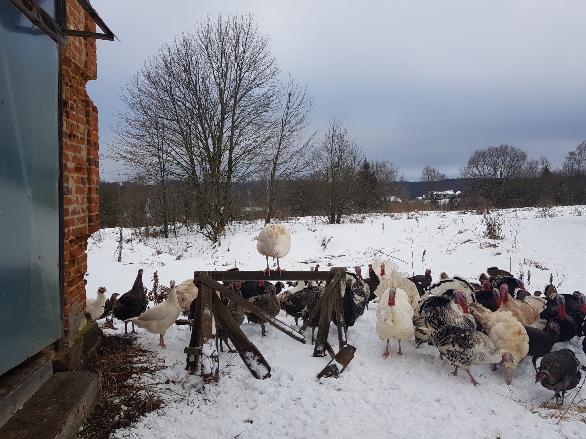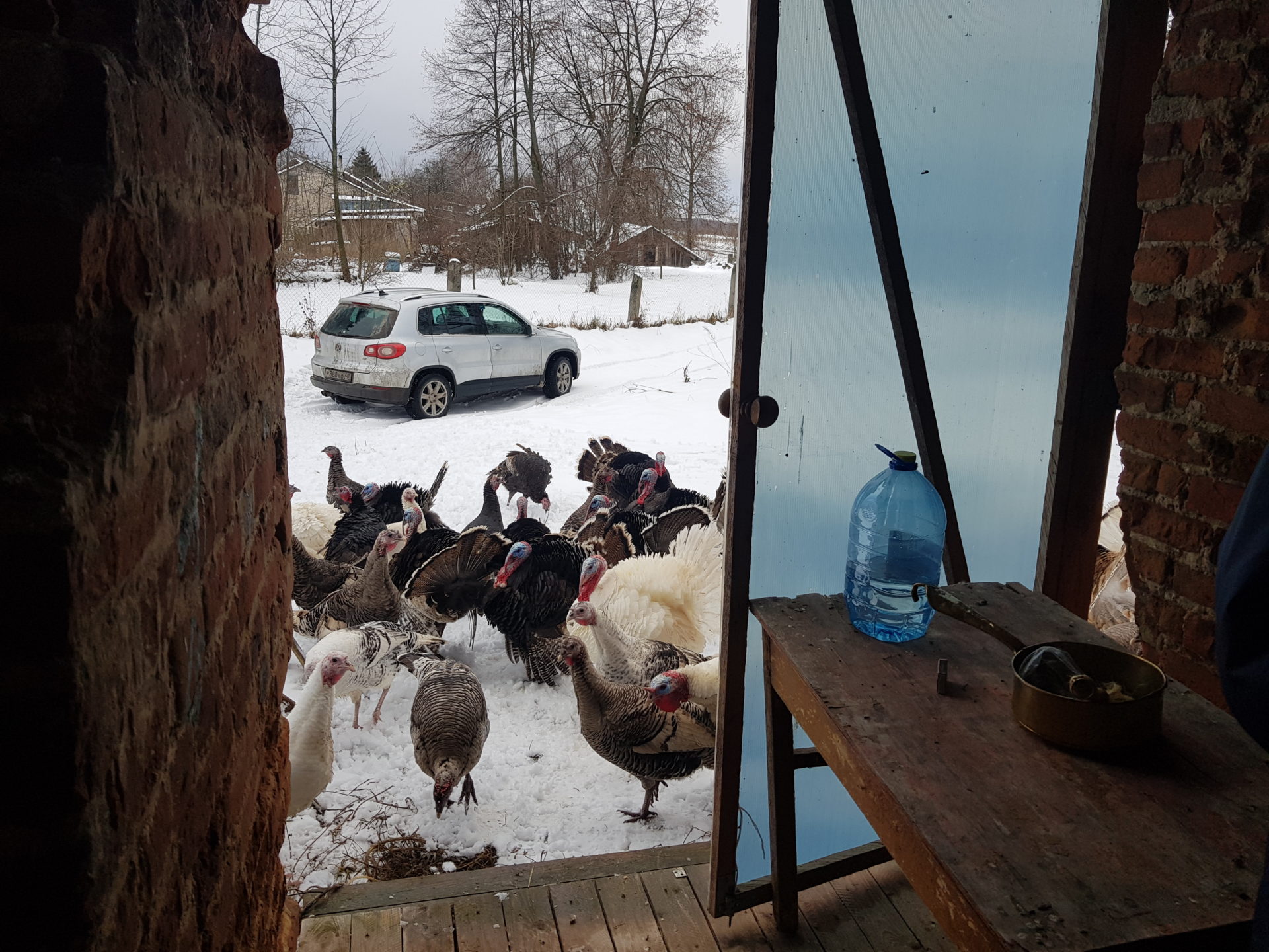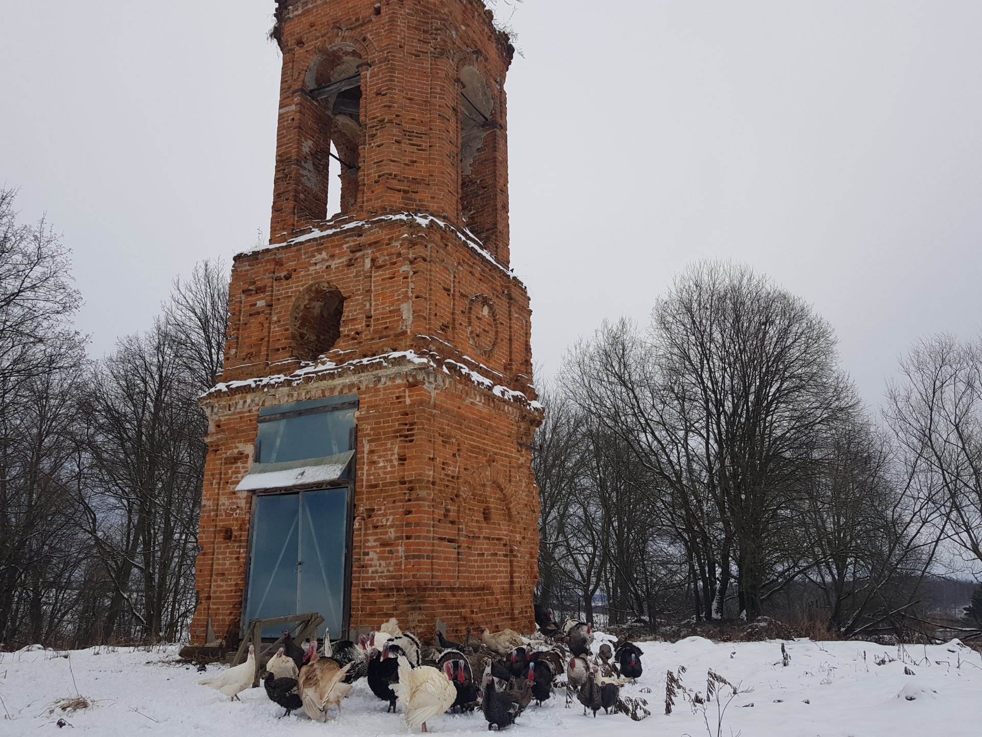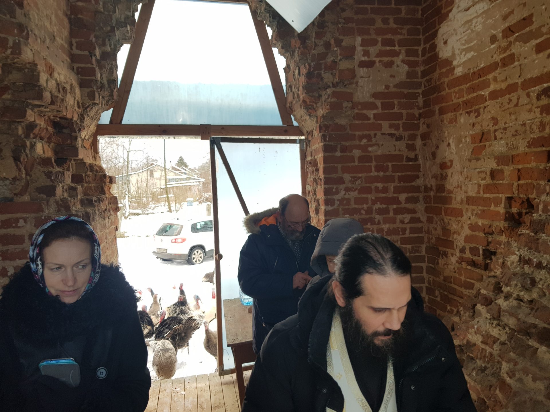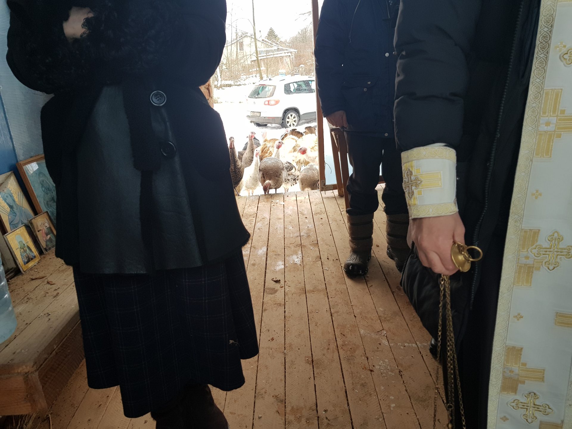 Примечательно, что в самом начале молебна к богомольцам присоединились местные жители — стайка индюков, которая не отходила от колокольни во время пения акафиста великомученицы Варваре.