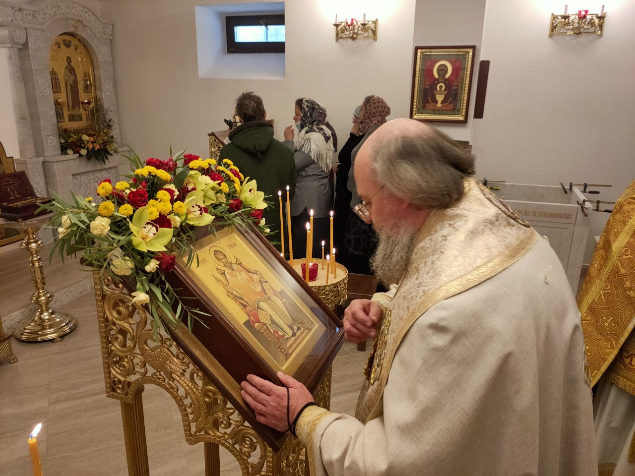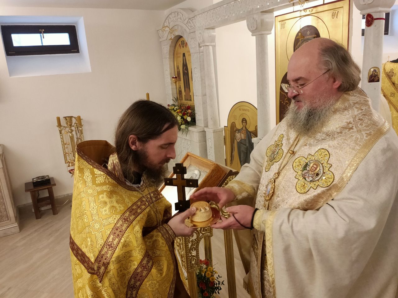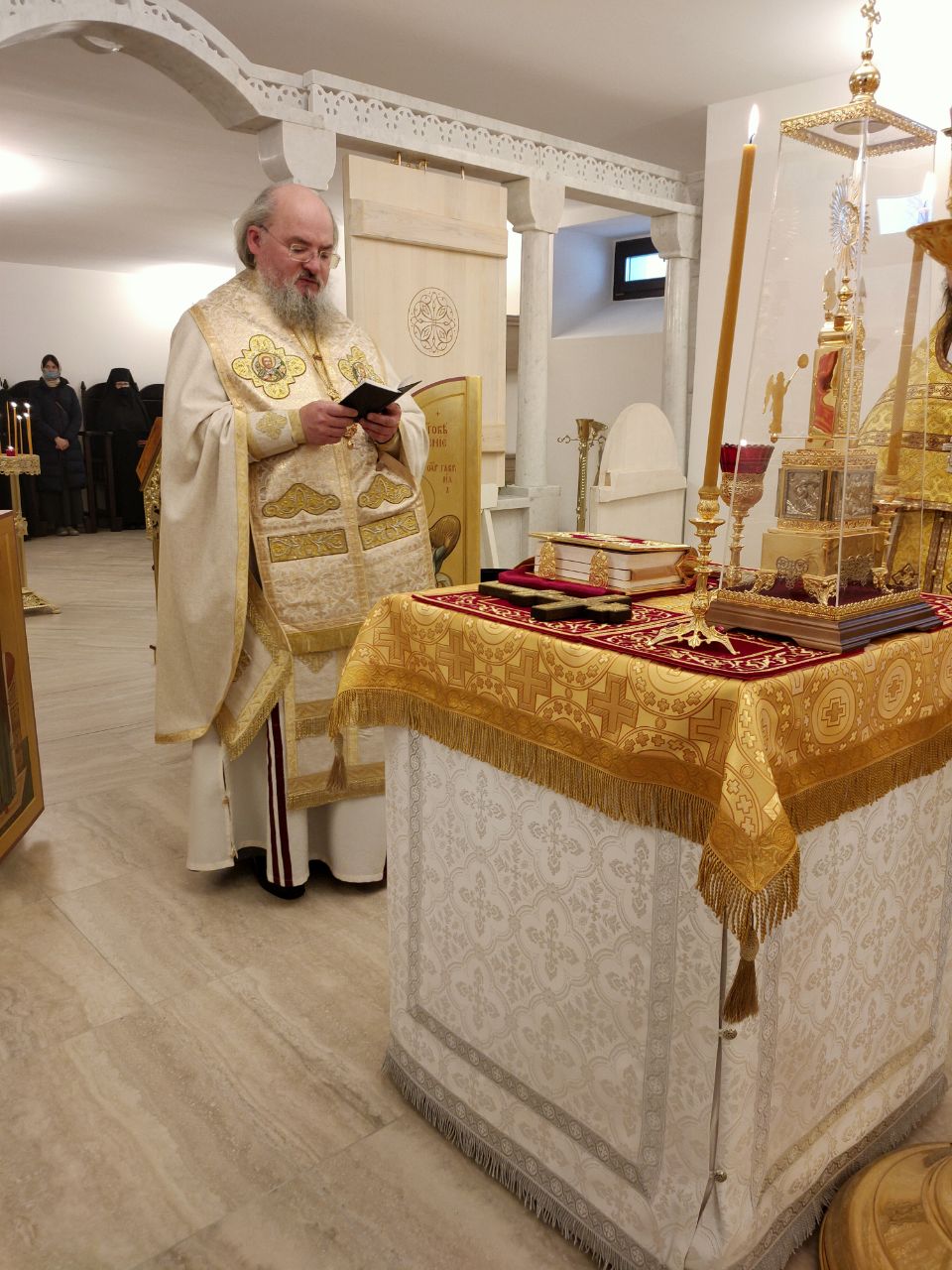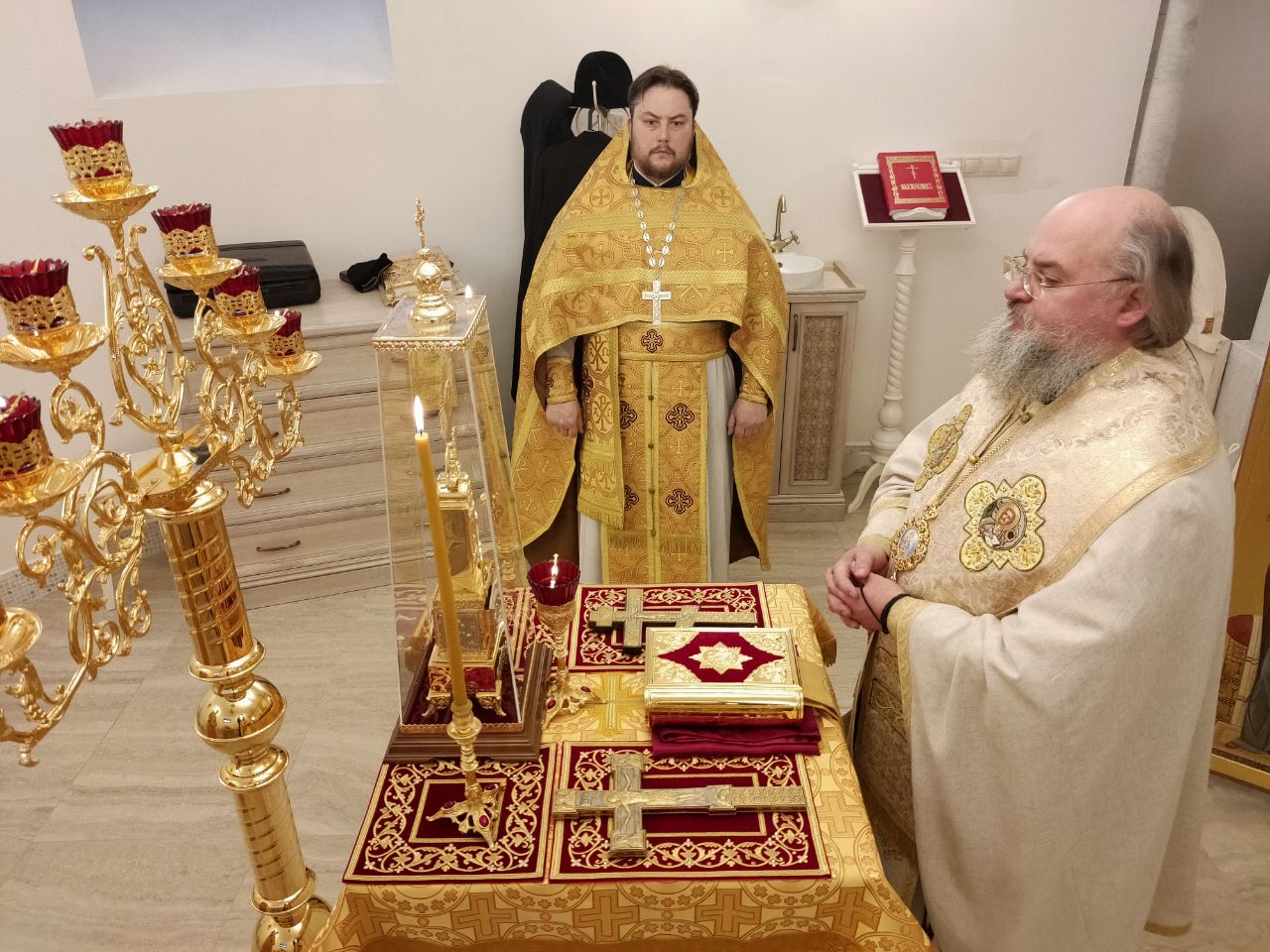 Преосвященному владыке сослужили: протоиерей Антоний Хатунцев, иеромонах Филипп (Панфилов), диакон Евгений Ковригин и иеродиакон Лука (Старостин).