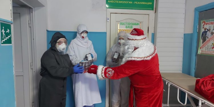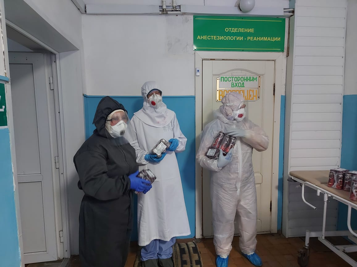 Волонтерами Социальной службы Казанского кафедрального собора города Людиново 25 декабря, в день памяти святителя Спиридона Тримифунтского, была передана очередная партия гуманитарной помощи медикам межрайонной больницы, работающим в «красной зоне».