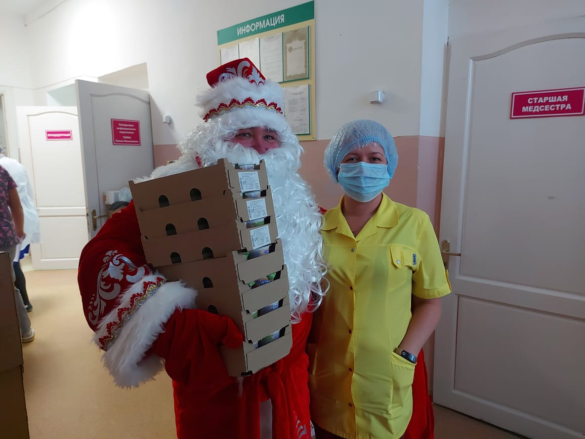 Добровольцы в сказочных костюмах, отвезли вкусные подарки медперсоналу, постарались поделиться со всеми отделениями своими позитивными эмоциями.