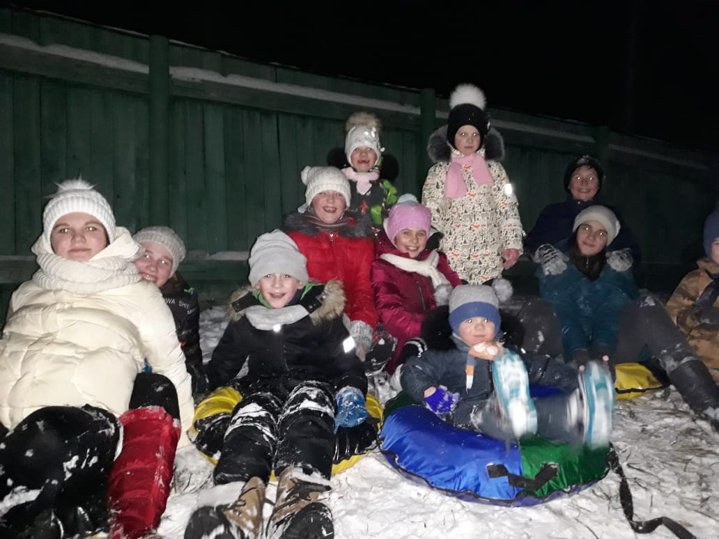Катание с горок на ледянках и ватрушках, праздничное поздравление Дедом Морозом у елки, посещение малышами бассейна в городе Сухиничи, репетиции к праздничному концерту в честь Рождества Христова, который состоится 10 января — это только начало каникул. Еще впереди посещение служб в храме, Причастие. А так же елки, горки, бассейн, лесничество, квесты и танцы…