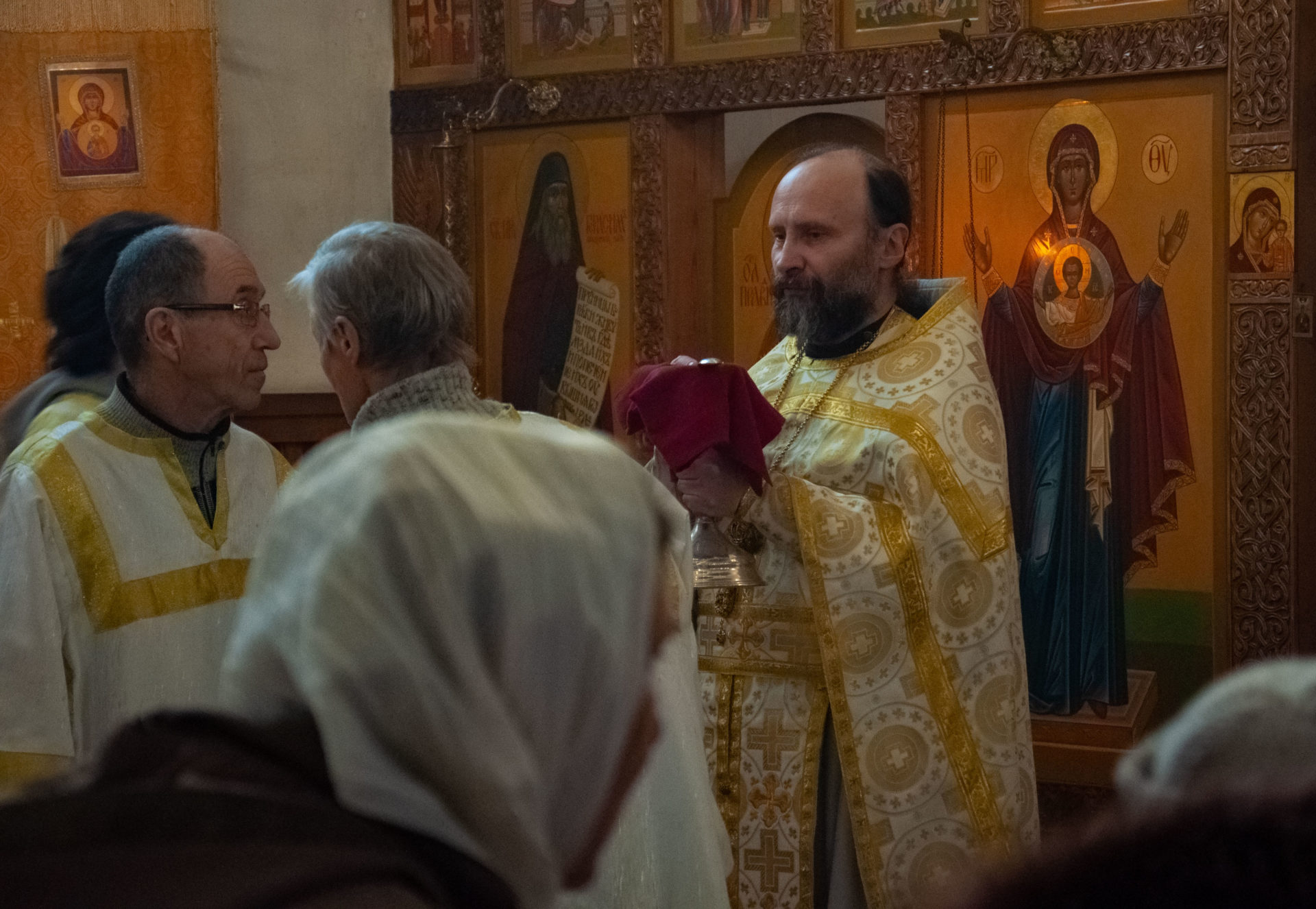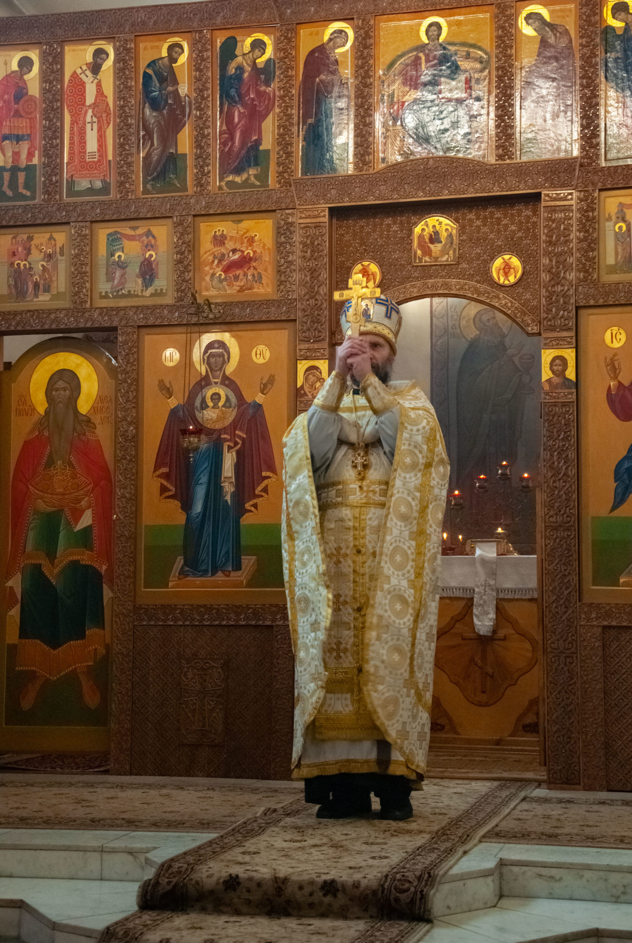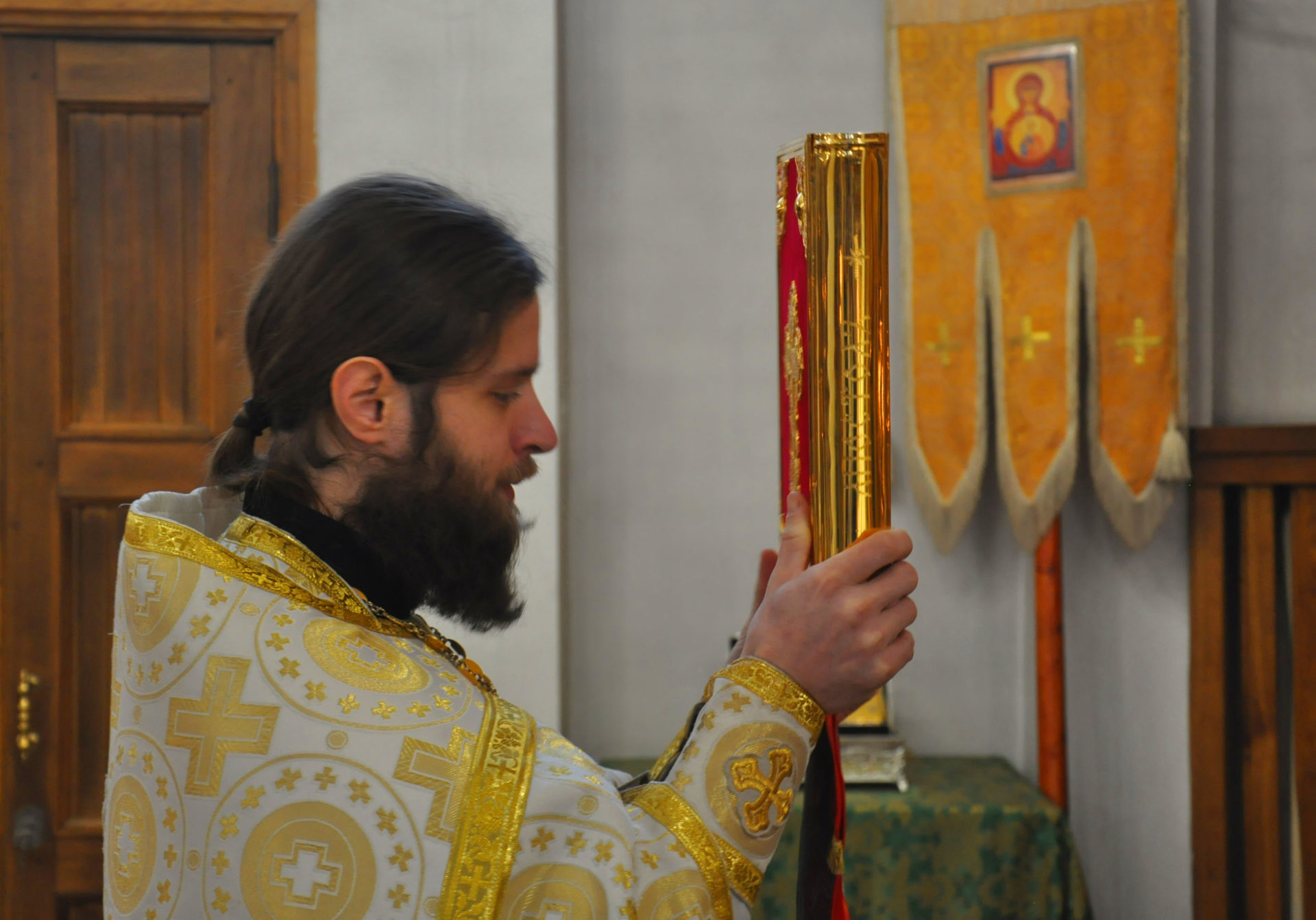 Богослужение началось с водосвятного молебна с пением акафиста в честь Кронштадтского пастыря. Молебен совершил благочинный округа иерей Алексей Ефименков.
