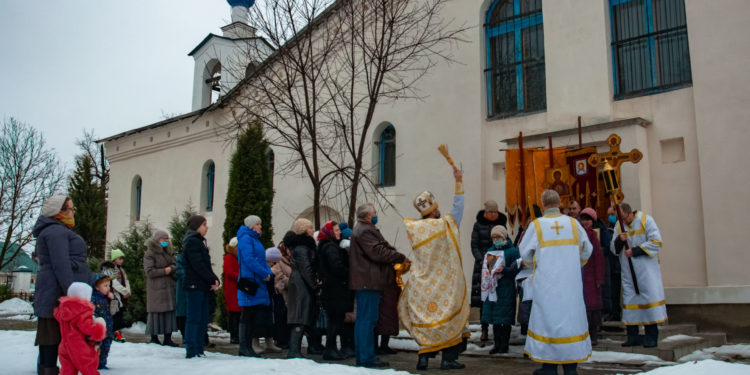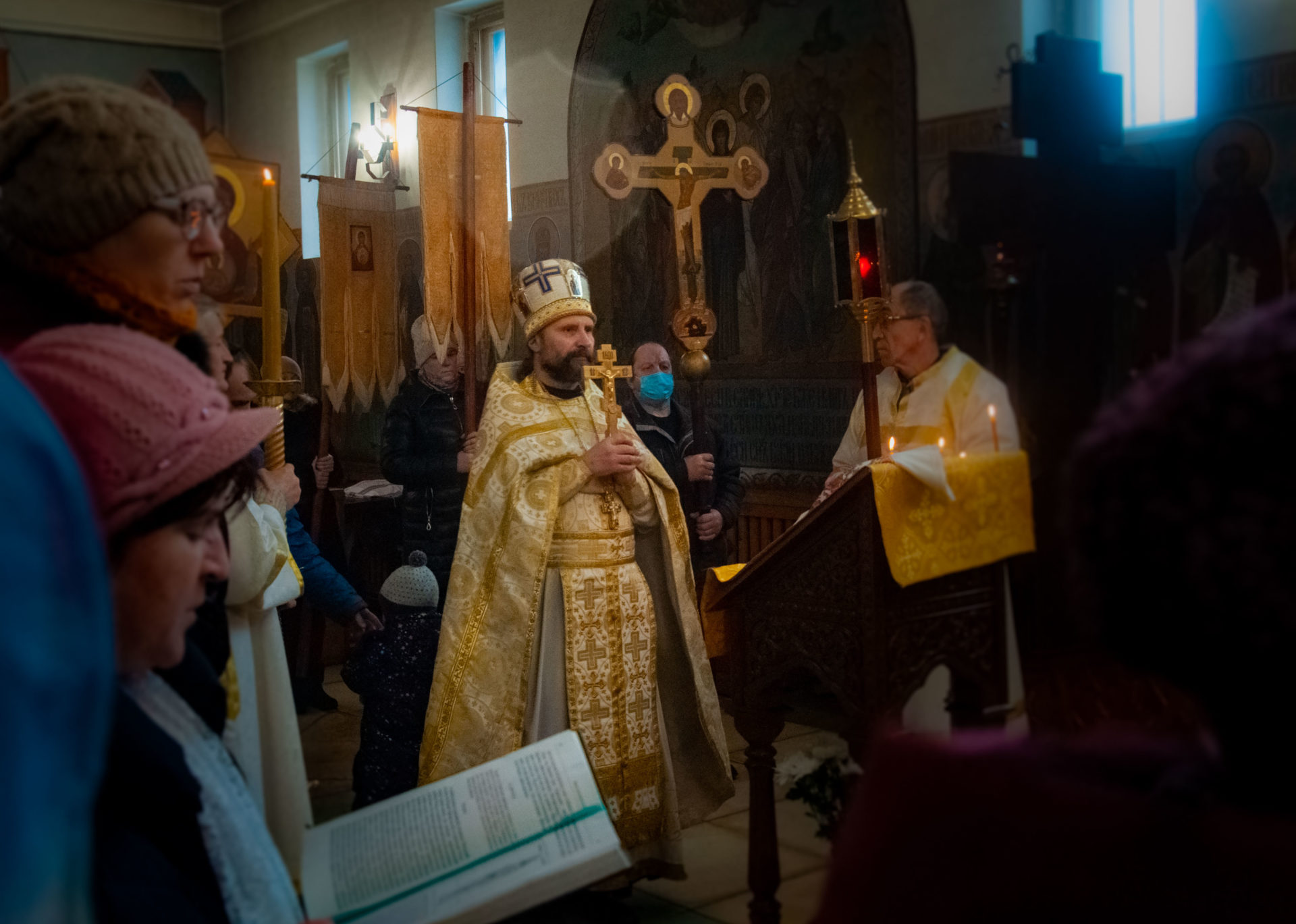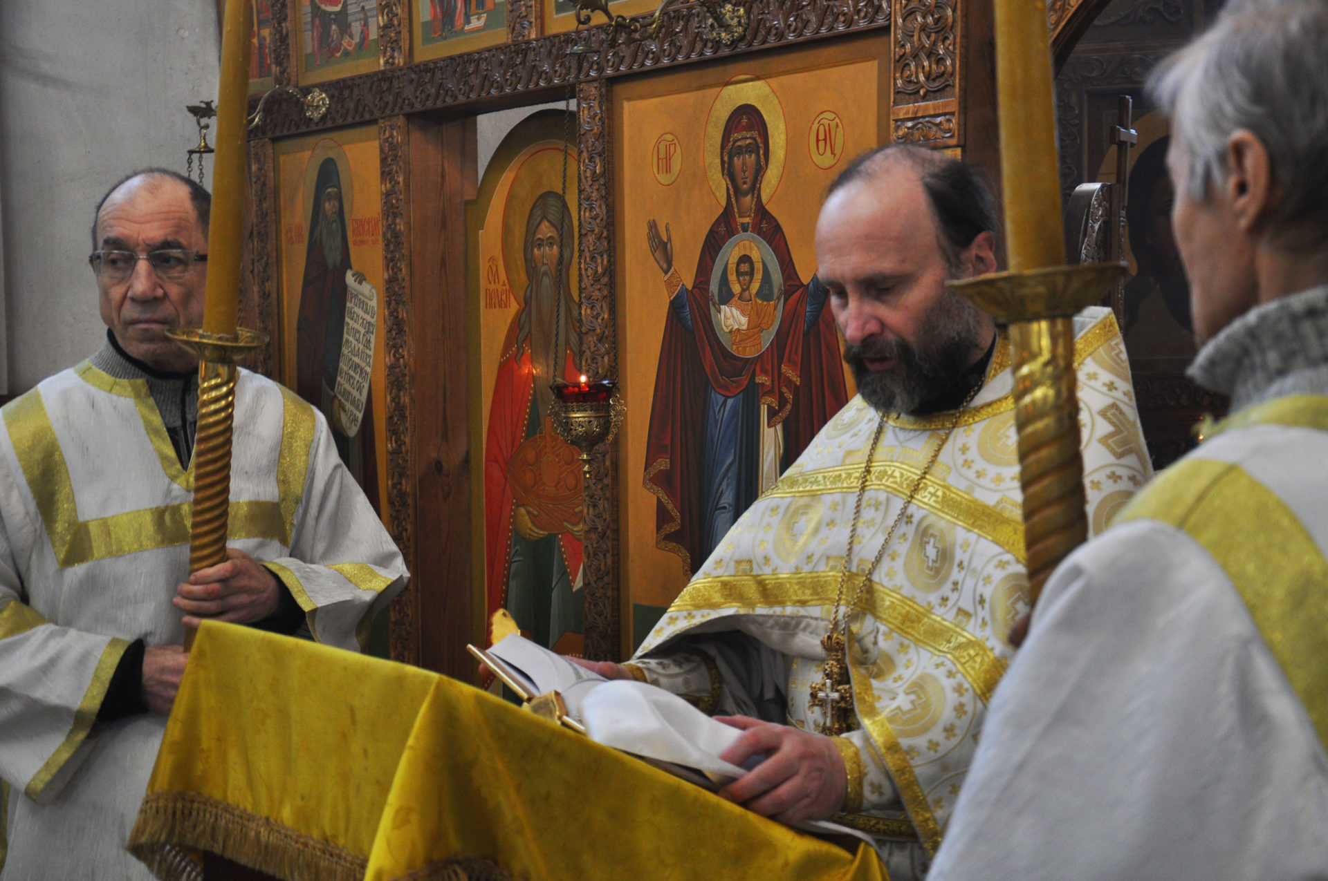 Богослужение началось с водосвятного молебна с пением акафиста в честь Кронштадтского пастыря. Молебен совершил благочинный округа иерей Алексей Ефименков.