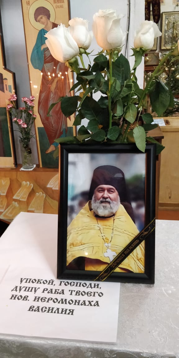 Милосердный Господь да сопричтет с праведными в селениях избранных новопреставленного иеромонаха Василия, да упокоит его на месте празднующих и некончаемой райской сладости (седален 8-го гласа в субботу утра) и да сотворит ему вечную память!