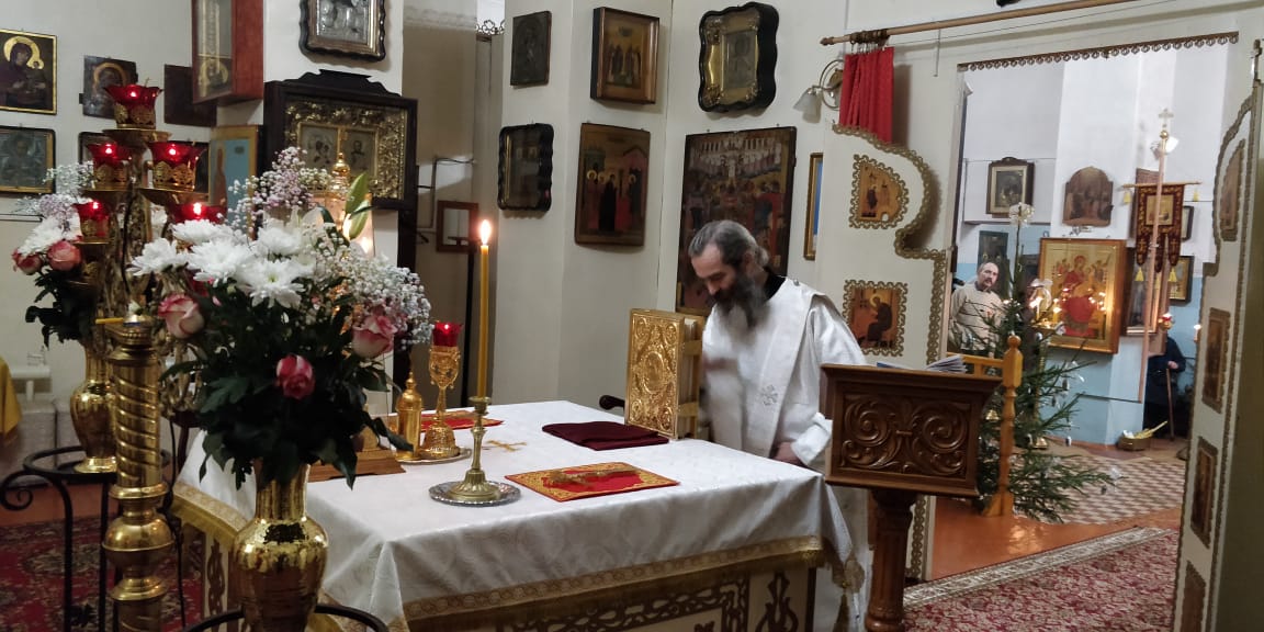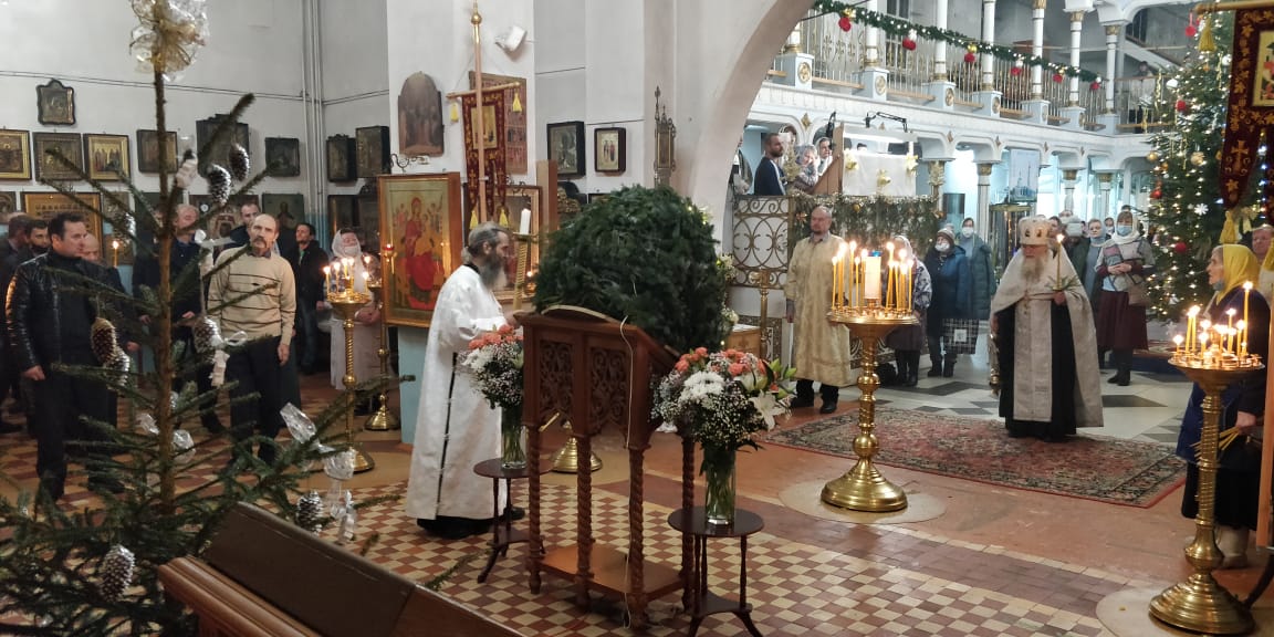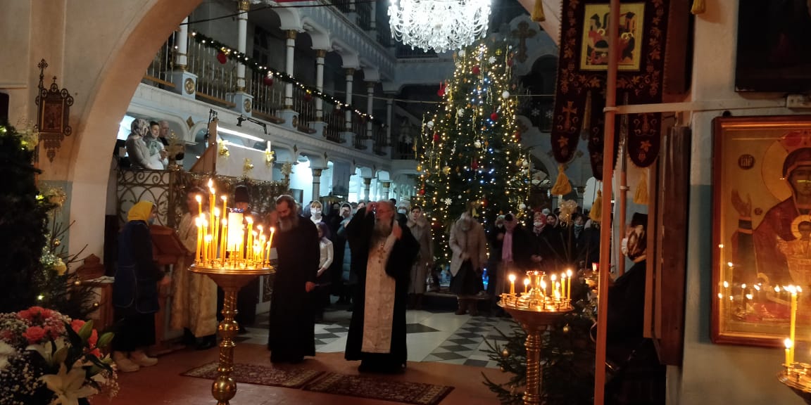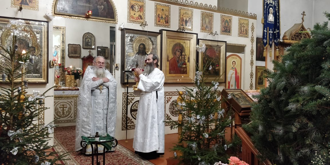 Перед началом Божественной литургии протоиерей Алексий Жиганов огласил Рождественское послание Святейшего Патриарха Московского и всея Руси Кирилла архипастырям, пастырям и всем верным чадам Русской Православной Церкви, и Рождественское послание Преосвященнейшего Никиты, епископа Козельского и Людиновского.