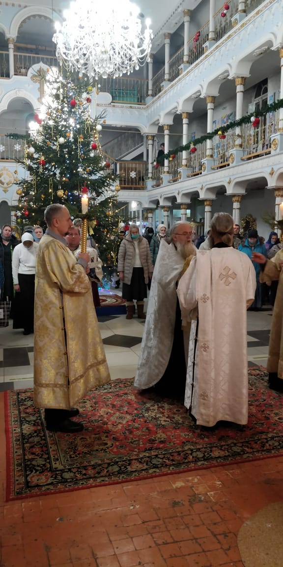 7 января, в полночь, в Казанском соборе совершилась праздничная Божественная литургия. В храме к этому часу было особенно торжественно. Радость переполняла сердца людей, пришедших в эту светозарную ночь прославить родившегося Младенца Христа в главный храм города.
