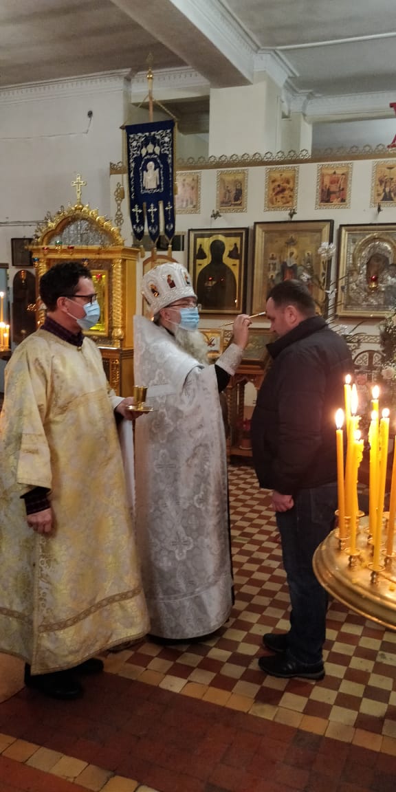 Затем прихожане храма приложились к праздничному образу и помазались освященным елеем.