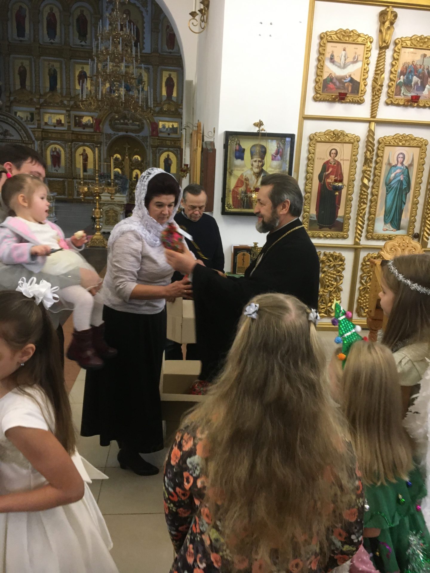 В начале праздничного представления настоятель храма обратился с приветственным словом ко всем присутствующим,  рассказав о значении пришествия в мир Христа Спасителя. Ребята дошкольного и школьного возраста показали театрализованную постановку о Рождестве Христовом. Дети радовали взрослых не только театральным представлением, но и Рождественскими песнями и колядками. Батюшка поблагодарил выступающих, а также Саватееву Татьяну Михайловну  и Сидорову Татьяну Викторовну за подготовку к празднику, а Черкезову Антонину Николаевну за предоставленные в дар для детей сладкие и другие подарки.