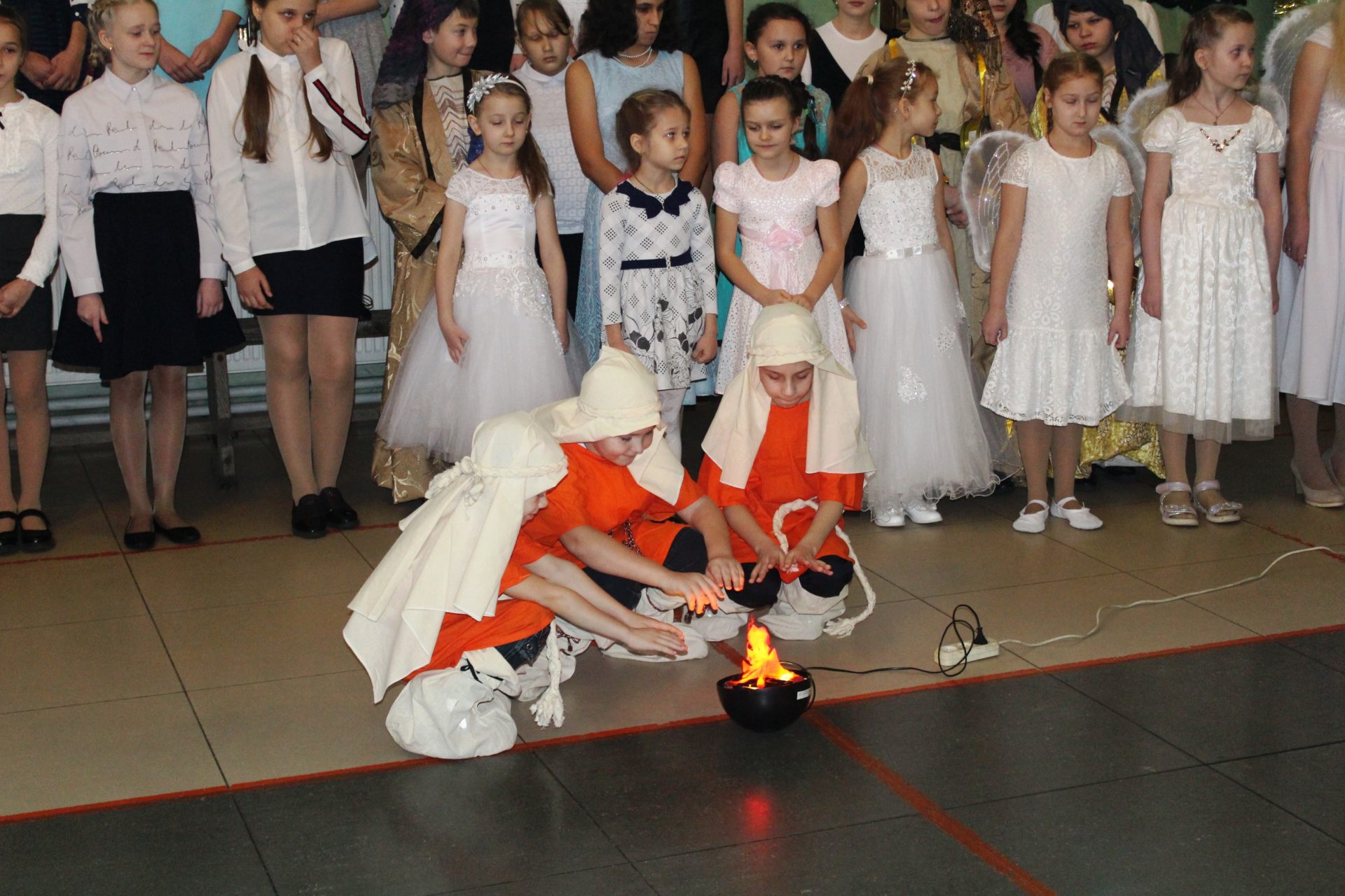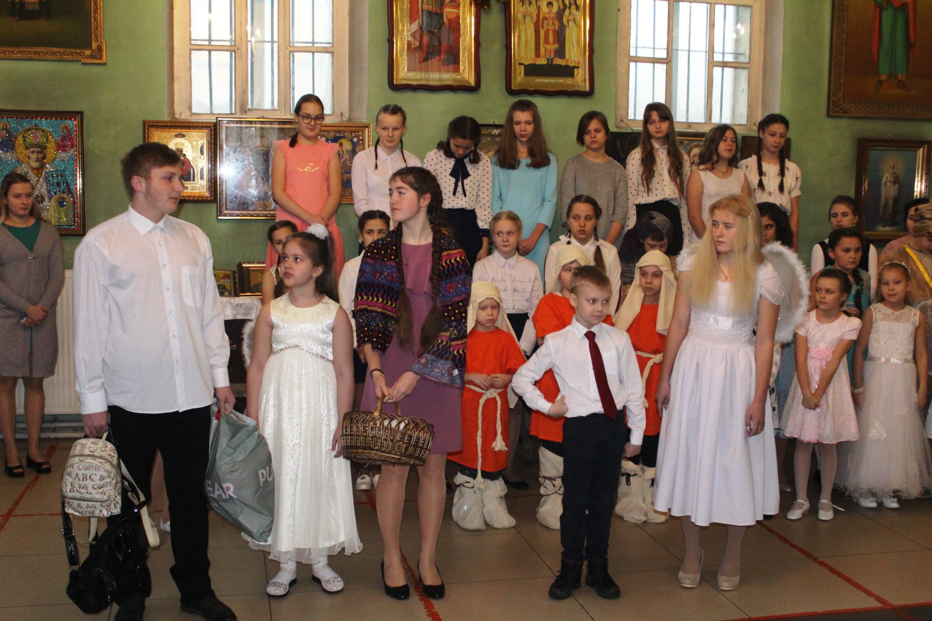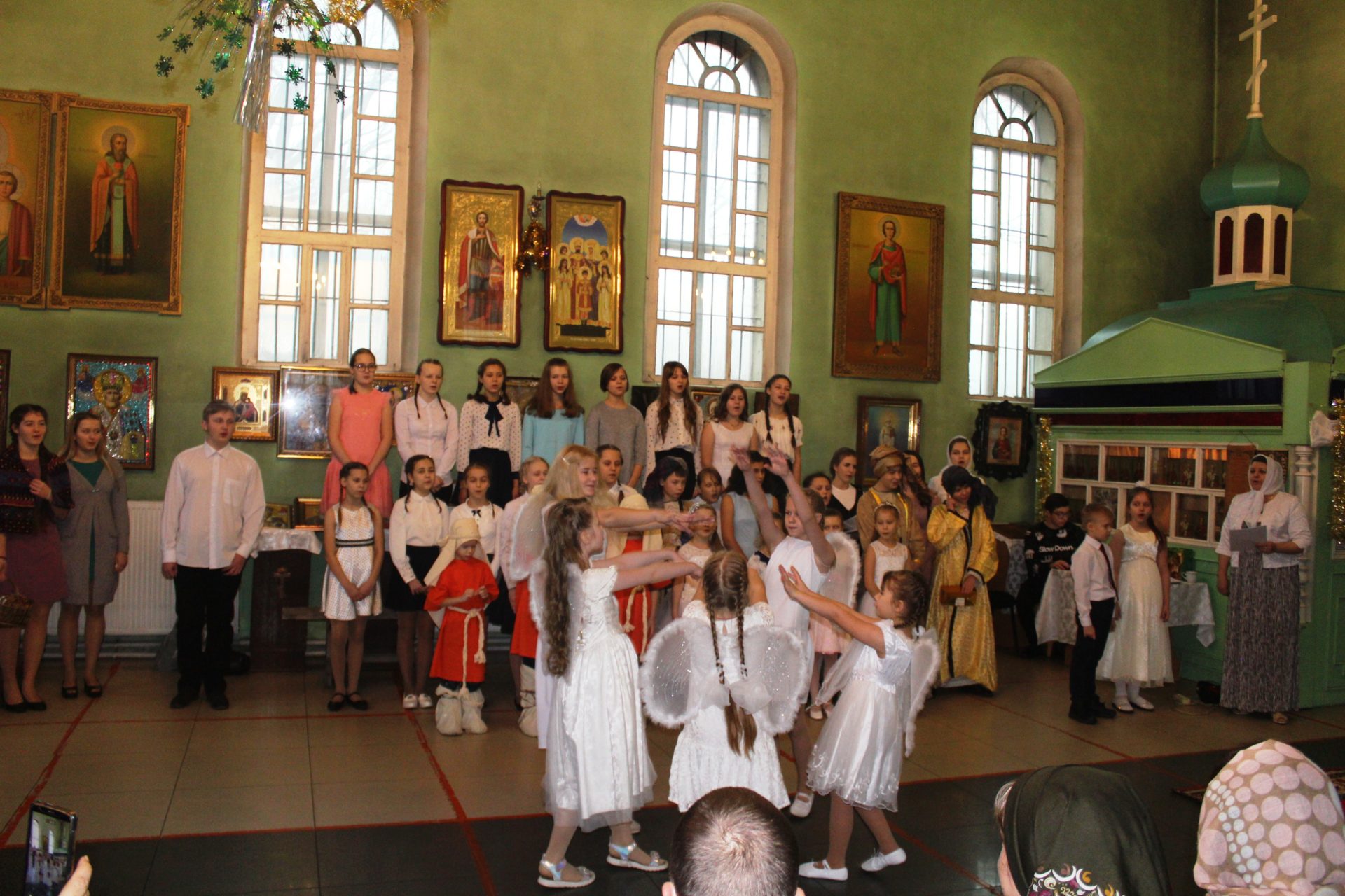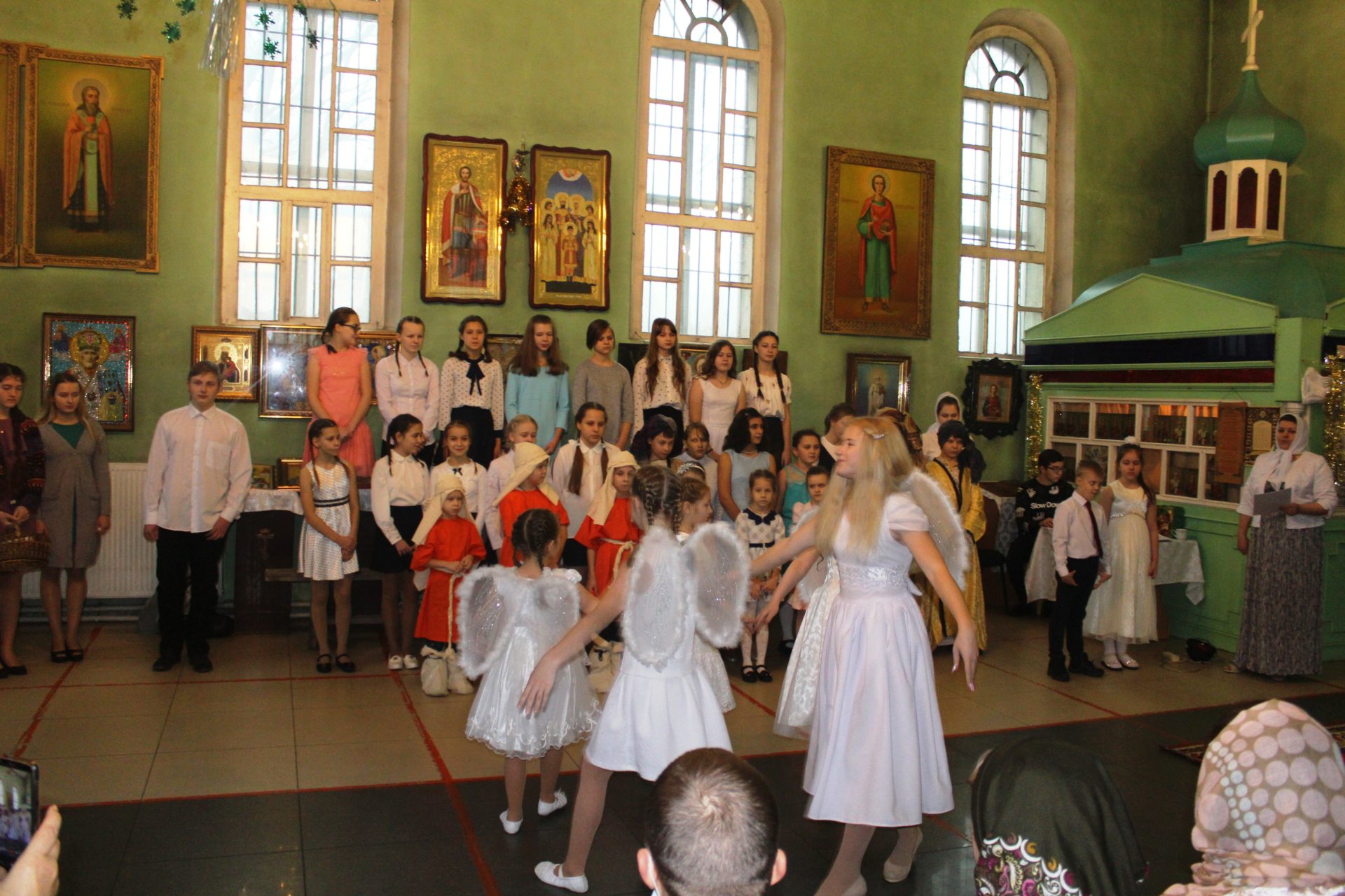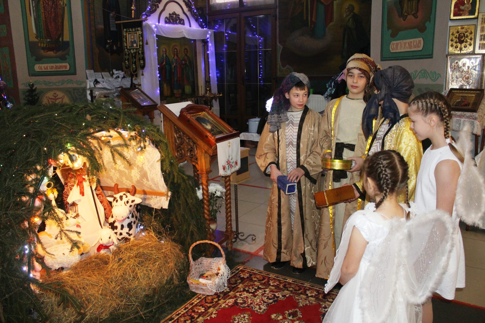 Хорошо известные евангельские события, повествующие о пришествии в мир Спасителя. Чередой сменяют друг друга на сцене, пастухи упавшие на колени при виде белокрылого Ангела, который благовестил о Рождении Спасителя. С замирание сердца все смотрели танец ангелов в исполнении девочек, которые кружились в белоснежном вихре рождественского вальса. Пастухи отправились поклониться новорождённому Младенцу Христу.