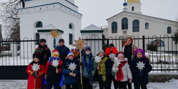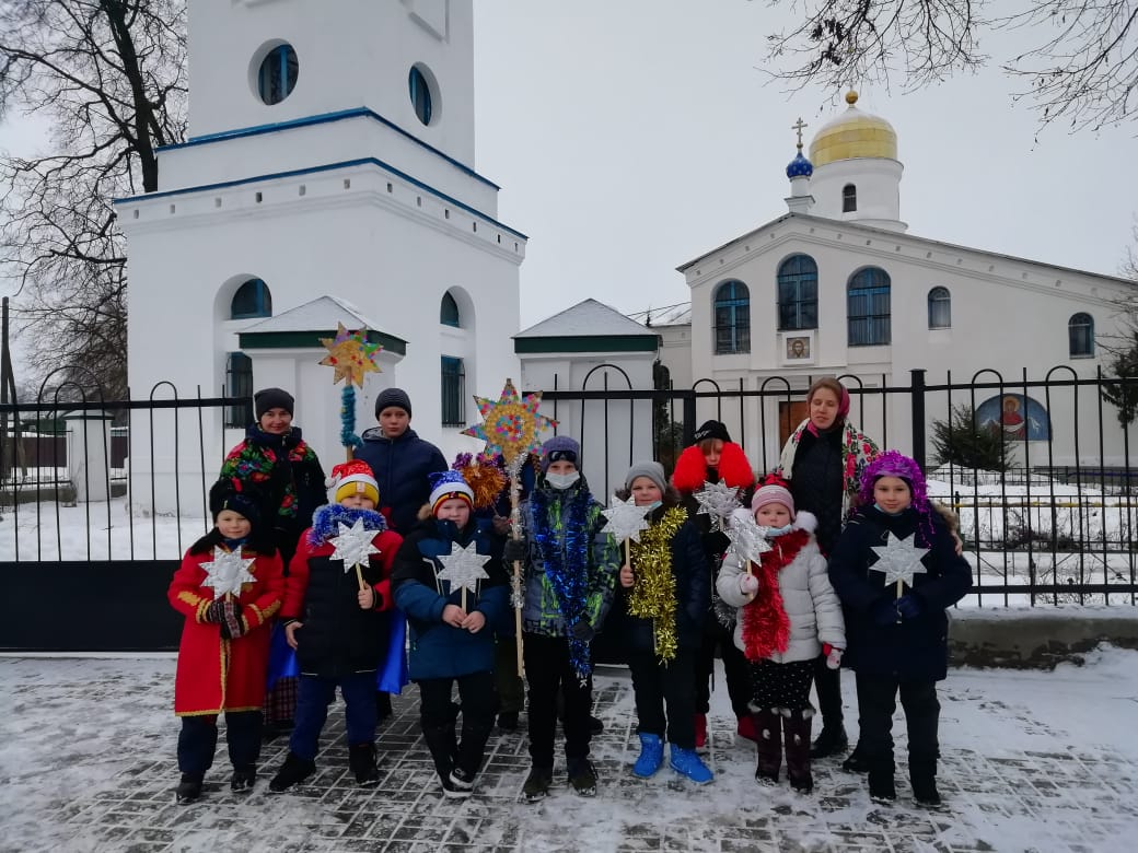 По многодетной традиции, 7 января воспитанники воскресной школы храма Покрова Пресвятой Богородицы в городе Жиздра с руководителями пошли колядовать, чтоб возвестить городу о рожденном Христе. Жители были рады маленьким колядовщикам, угощали конфетами и фруктами.
