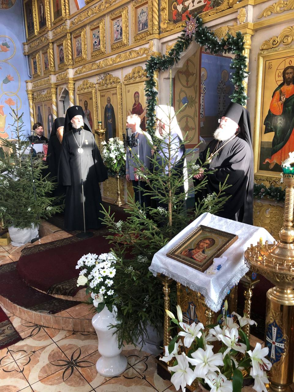 После отпуста литургии священнослужители совершили славление праздника, а затем митрополит Климент обратился к пастве с проповедью.