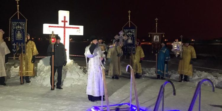 В день праздника Святого Богоявления — Крещения Господа Бога и Спаса нашего Иисуса Христа настоятель собора протоиерей Алексий Жиганов совершил всенощное бдение и ночную Божественную литургию. Настоятелю сослужили: иерей Алексий Сначев и диакон Андрей Соколов. По окончании литургии, согласно уставу, в центре храма духовенством был совершен чин великого освящения воды.