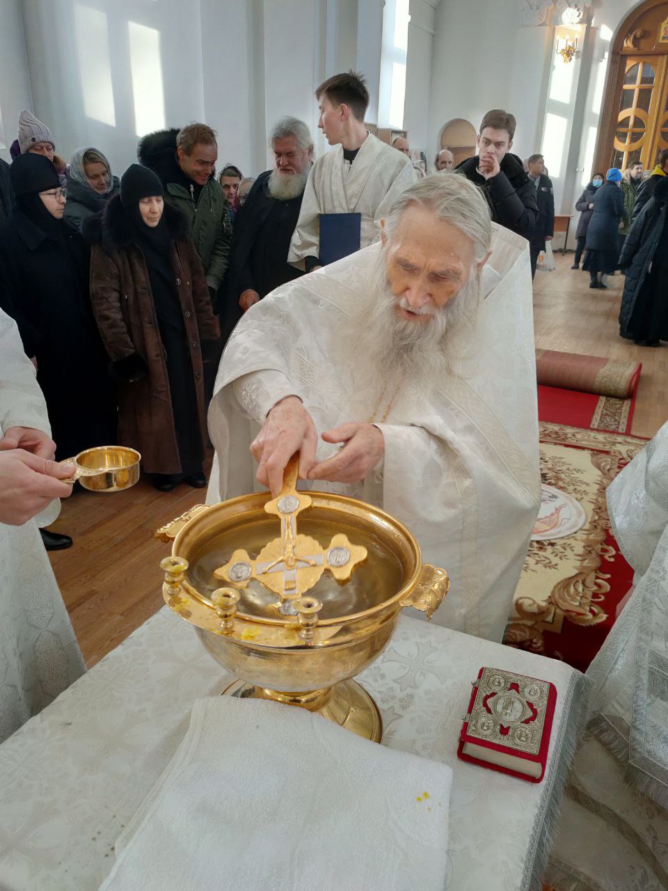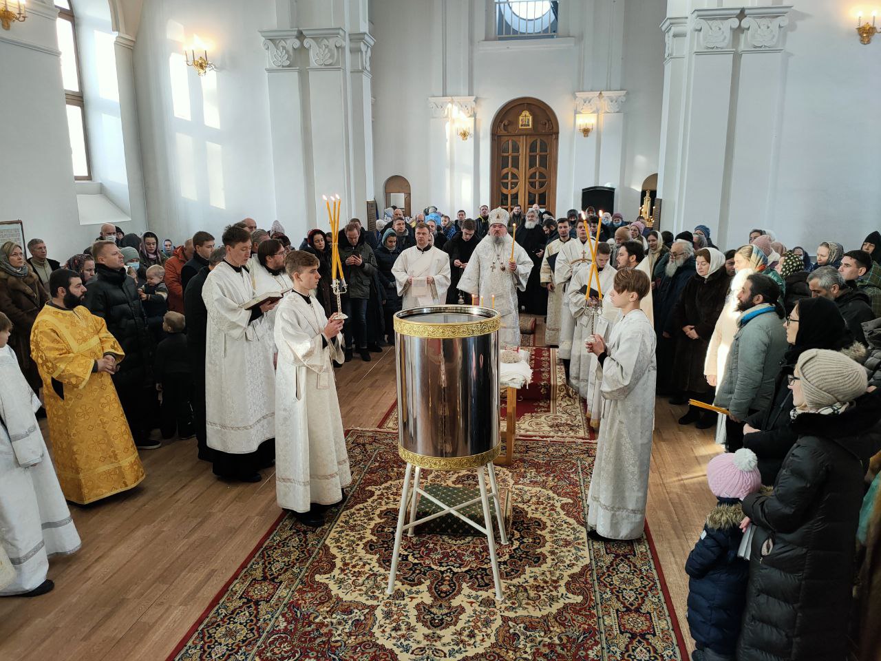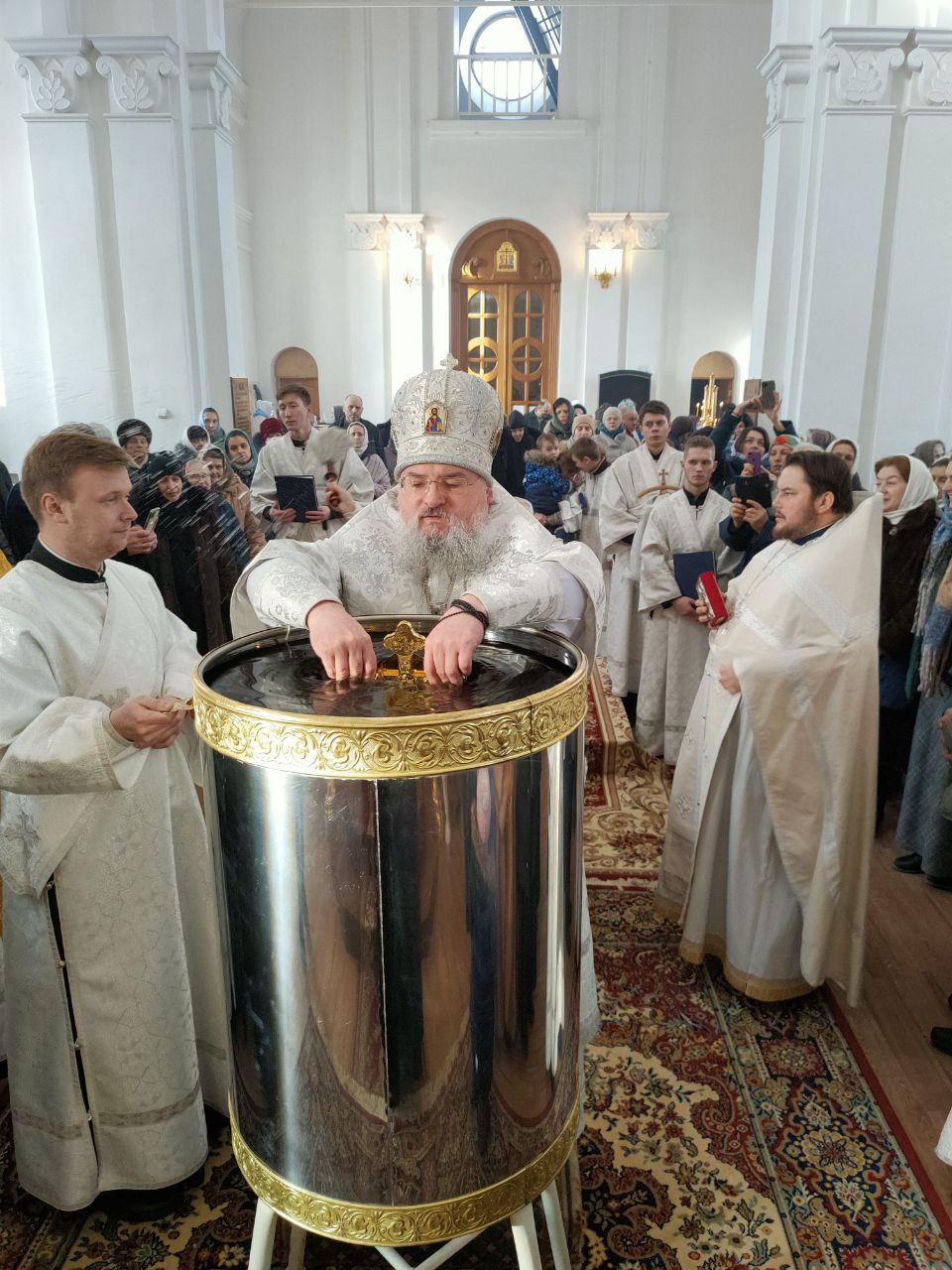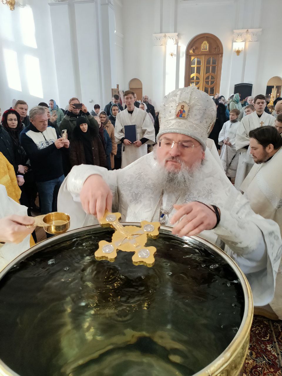 По заамвонной молитве священнослужители совершили Чин Великого освящения воды Святых Богоявлений, в завершении которого владыка обратился к богомольцам с проповедью.