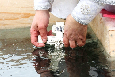 Успела вовремя: настоятель храма, иерей Дмитрий Торшин, и диакон Вадим уже облачились в праздничные одежды и готовятся спуститься к купели, чтобы начать чин освящения воды.