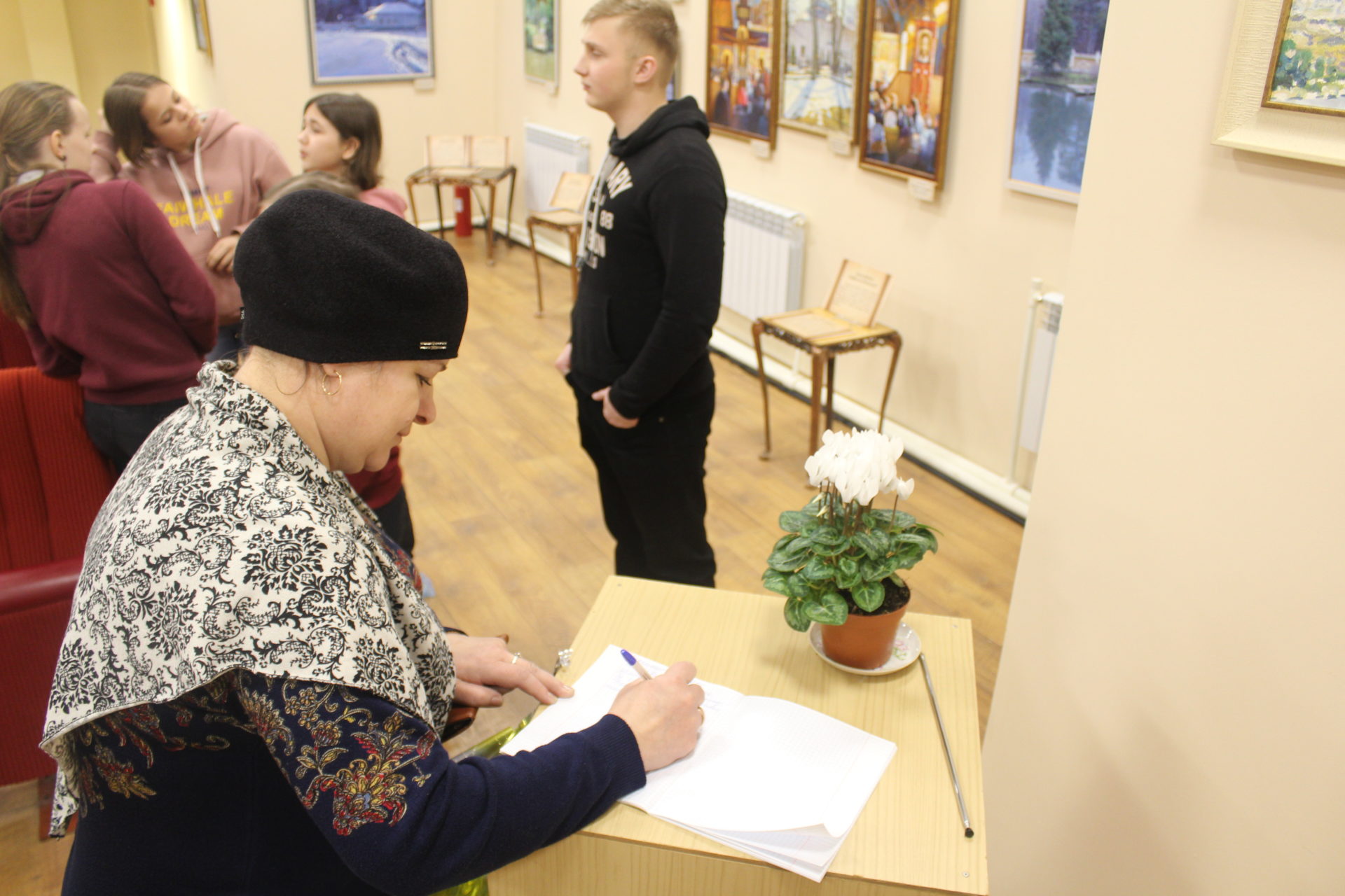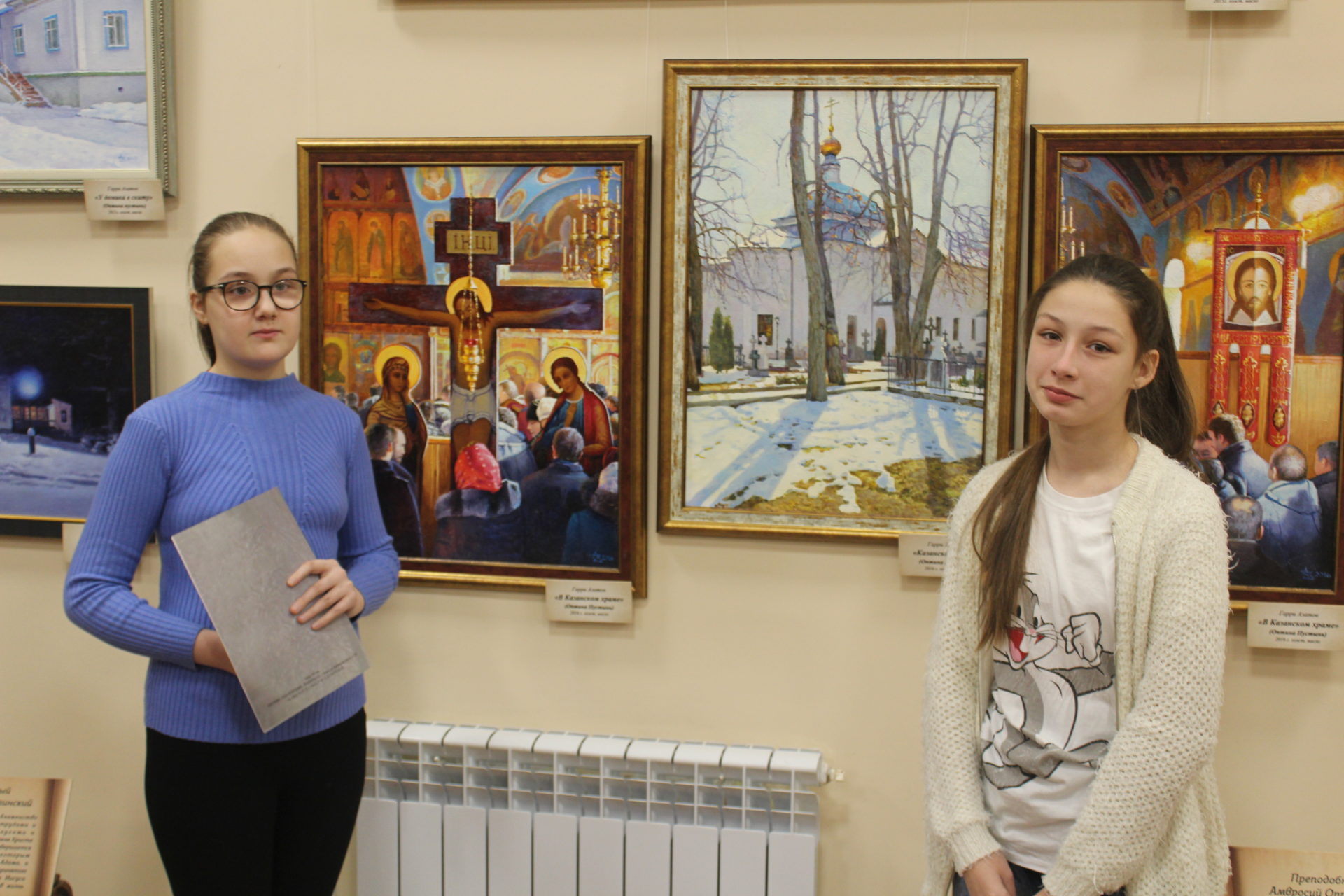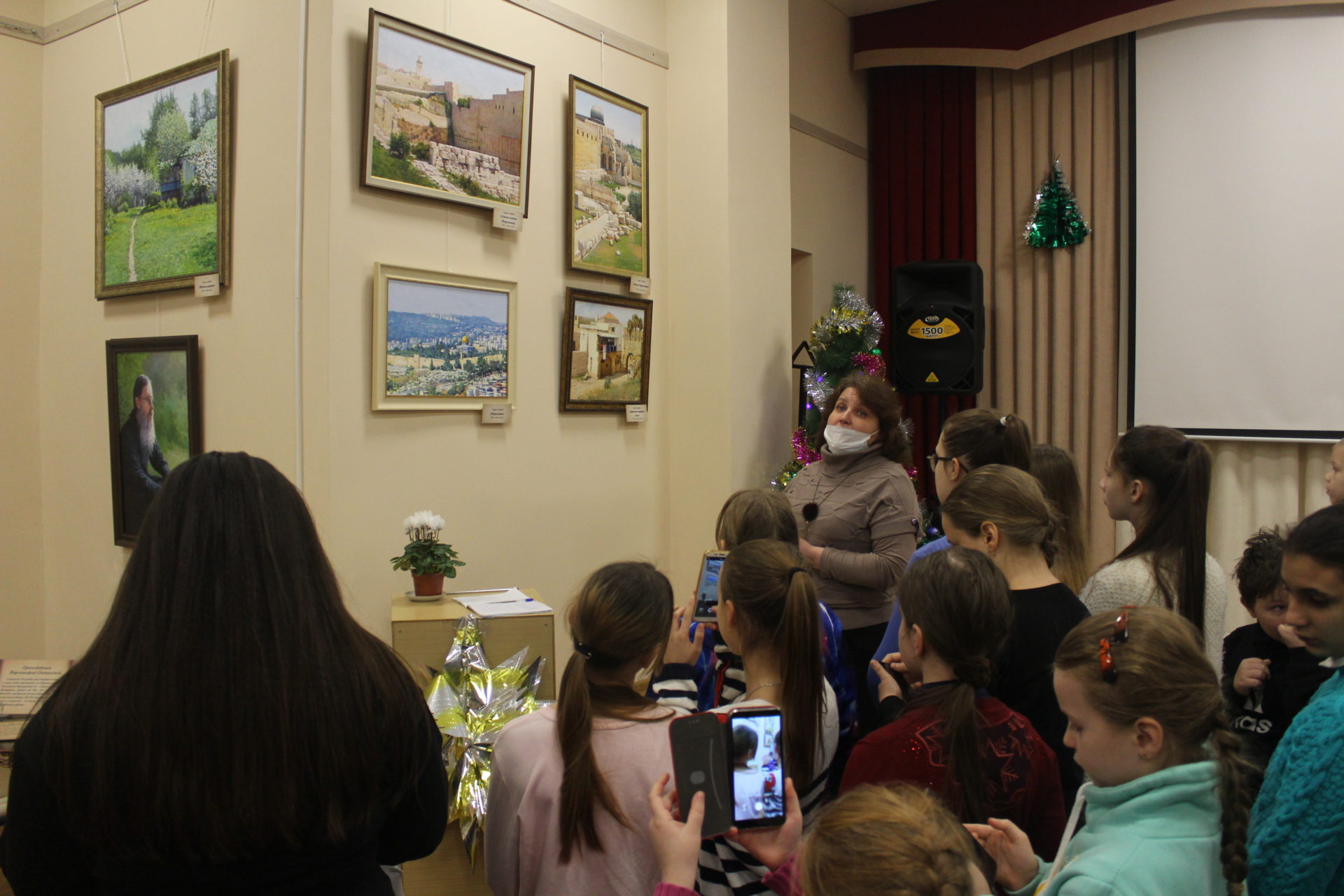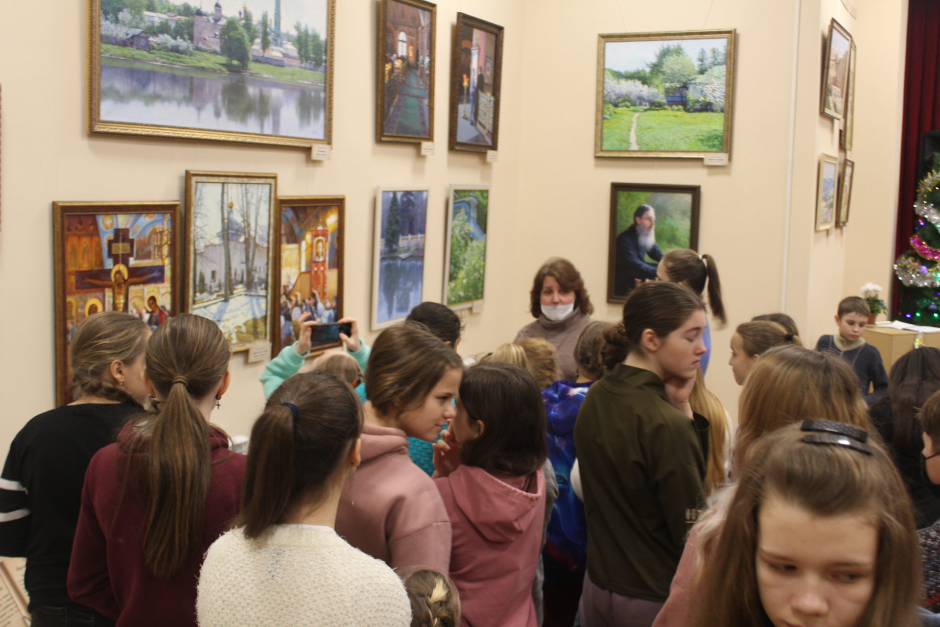 24 января по благословению благочинного 6 округа настоятеля храма протоиерея Василия Биляк, ученики воскресной школы «Радонеж» города Людиново со своим преподавателем Клячиной Татьяной Ивановной и родителями посетили выставку Гарри Азатова » На камнях Христовой веры» (Иереусалим, Оптина Пустынь, Валаам, Новгород).