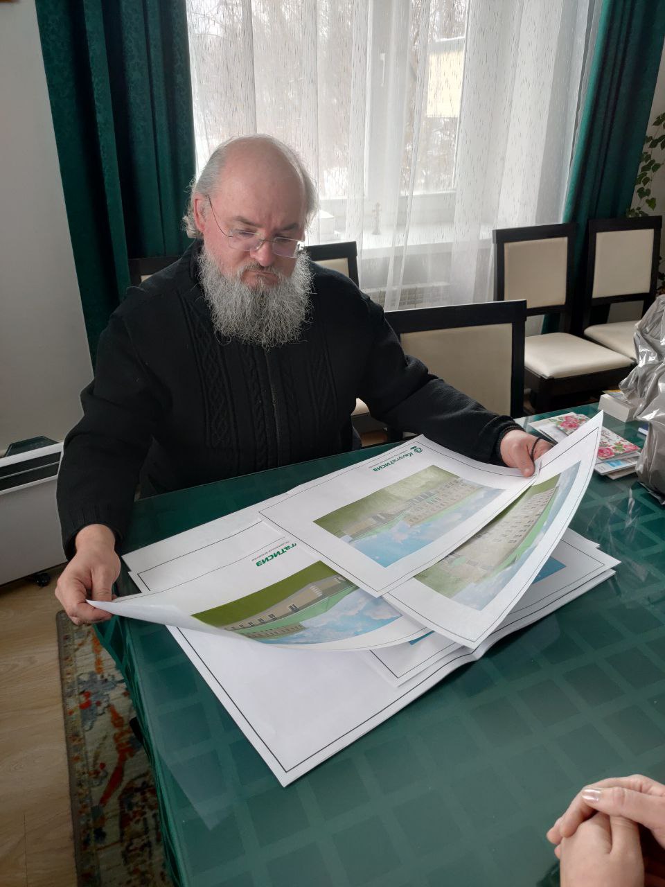 В беседе Татьяна Юрьевна познакомила владыку с текущей ситуацией вопроса о строительстве нового помещения гимназии. Был утвержден проект будущего здания.