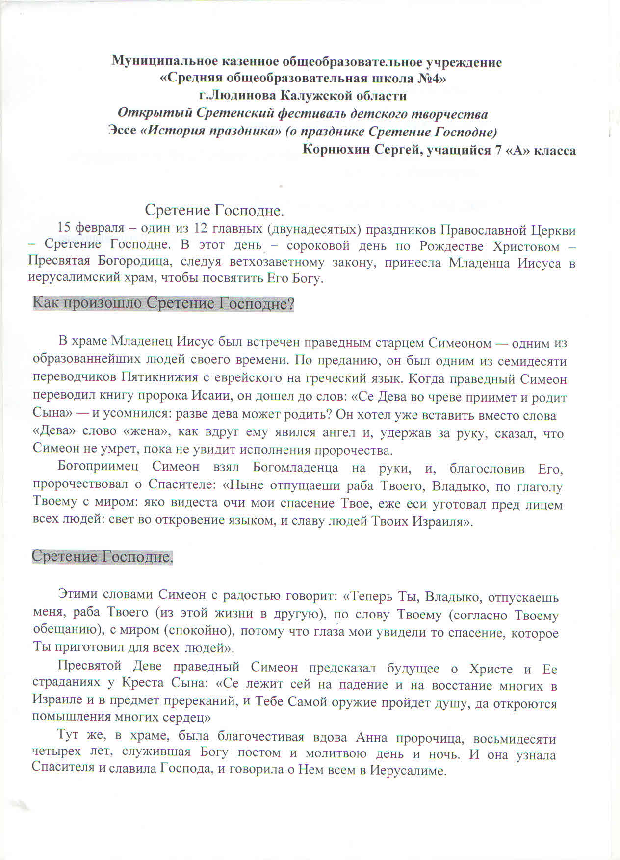 По благословению епископа Козельского и Людиновского Никиты с12 по 15 февраля 2021 года воскресная школа «Светоч» при Казанском соборе города Людиново провела открытый Сретенский фестиваль детского творчества, посвящённый празднованию Сретения Господня и Дню православной молодёжи.