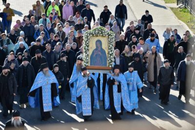Калужская икона крестным ходом вернулась из Оптиной Пустыни в Успенский собор