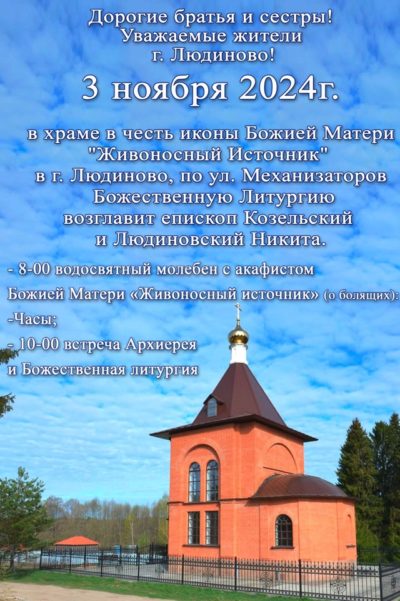 30 октября, в день памяти перенесения мощей святого праведного Лазаря Четверодневного, после Божественной литургии в Лазаревском храме города Людиново, епископ ... -