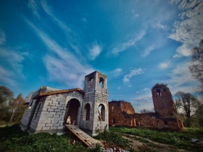Продолжается строительство храма в честь иконы Божией Матери «Достойно есть». В селе Хозцы Козельского района возле руинированного храма Покрова Пресвятой ... -