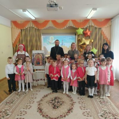 На праздник Покрова Пресвятой Богородицы настоятель храма Зачатия Иоанна Предтечи в селе Губино иерей Дионисий Капустин посетил Козельский детский сад ... -