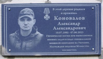 В память о жизни и подвиге бойца СВО Александра Коновалова, в родной деревне Слаговищи Козельского района, на стене приходского дома ... -