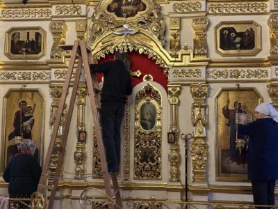 Уборка в Благовещенском храме к празднику Рождества Христова
