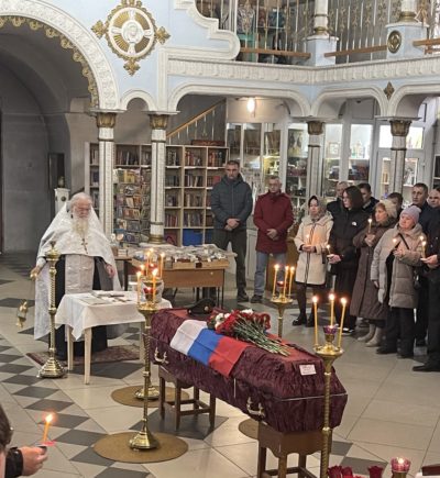 Отпевание погибших воинов в Казанском соборе города Людиново