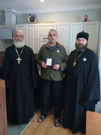 Награждение памятным юбилейным знаком «10 лет Козельской епархии» активного прихожанина в селе Дудоровский Ульяновского района