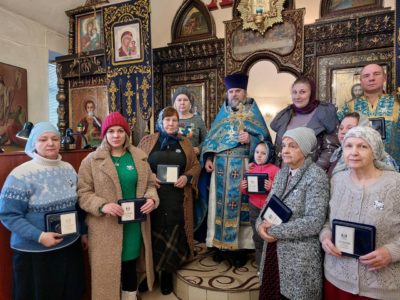 Награждение юбилейным знаком Козельской епархии прихожан Лазаревского храма города Людиново