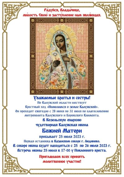 По благословению митрополита Калужского и Боровского Климента в Калужской митрополии с 28 июня по 31 июля 2023 года совершается ежегодный ... -