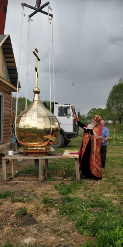 Установка Креста на куполе храма в деревне Верзебнево Людиновского района