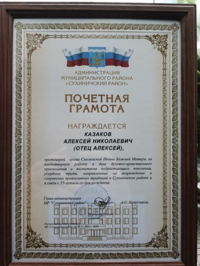 В Сухиничах с 55-летием поздравили настоятеля храма Смоленской иконы Божией Матери протоиерея Алексия Казакова