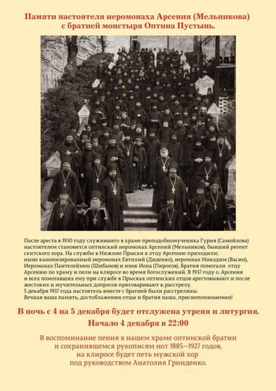 В храме Преображения Господня села Нижние Прыски в ночь с 4-го на 5 декабря сего года будут совершены заупокойные богослужения ... -