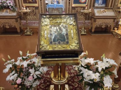 11 октября в Успенский собор прибыла святыня – мироточивый образ Пресвятой Богородицы «Умягчение злых сердец» или иначе «Семистрельная» (Бачуринская). Икону ... -