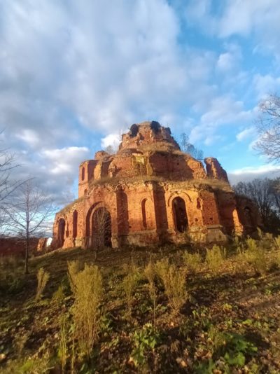 Епископ Никита посетил руины церкви Покрова Пресвятой Богородицы в селе Хозцы Козельского района