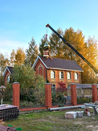 В Успенской Феклиной пустыни установили купол и крест на домовый храм строящегося монастырского корпуса