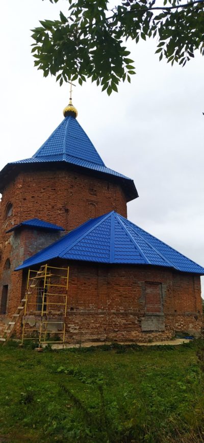 Продолжается восстановление храма в честь Тихвинской иконы Божией Матери в селе Стрельна Сухиничского района