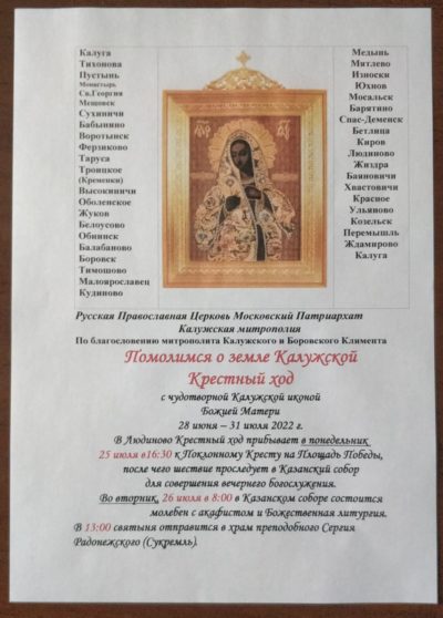 По благословению митрополита Калужского и Боровского Климента в Калужской митрополии с 28 июня по 31 июля 2022 года совершается ежегодный ... -