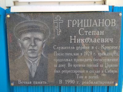 На сельском кладбище установлена мемориальная табличка, посвященная памяти репрессированного священнослужителя