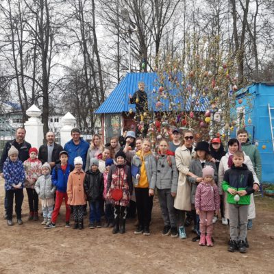 В Великую Субботу, 23 апреля 2022 года, дети воскресной школы «Светоч», студии «Дошкольник», учителя и прихожане храма нарядили в ограде ...